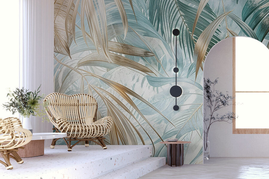 Transforme qualquer divisão num paraíso tranquilo com o mural “Lush Leaves in Serene Harmony”. Imagine acordar com um ambiente tropical luxuoso, onde as folhas das palmeiras dançam suavemente num cenário suave e arejado. Praticamente o convidará a saborear batidos ou a sonhar acordado com praias de areia. As cores calmas criam uma fuga perfeita do caos exterior, fazendo com que se sinta em vibração de férias durante todo o ano. Os convidados vão certamente reparar – quem não adoraria conversar em frente a uma peça tão apelativa? Traga o exterior para dentro de casa e deixe a beleza da natureza sussurrar paz na sua vida quotidiana. É como ter uma mini selva em casa, sem os insectos incómodos. Perfeito para qualquer espaço que precise de um toque de calma e cor!