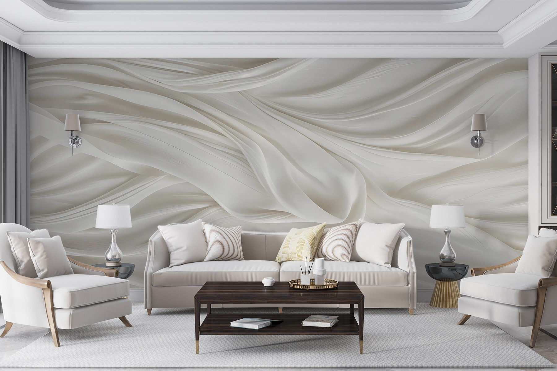 Transforme qualquer divisão com os murais de parede em tecido branco com dobras. Imagine-se a entrar numa paisagem de nuvens de sonho, onde ondas suaves criam uma vibração calmante que sussurra relaxamento. Este mural prega partidas aos olhos – é como se dobras suaves de tecido estivessem colocadas na sua parede, dando um toque de elegância acolhedora. Imagine-se a beber chá, com a luz do sol a filtrar-se, e o espaço parece apenas… mais leve. É perfeito para criar um ambiente sereno, seja num quarto ou numa área de estar tranquila. Este mural envolve-o em calor sem dizer uma palavra. Pronto para elevar o seu espaço? Vamos dar-lhe um pouco de estilo!