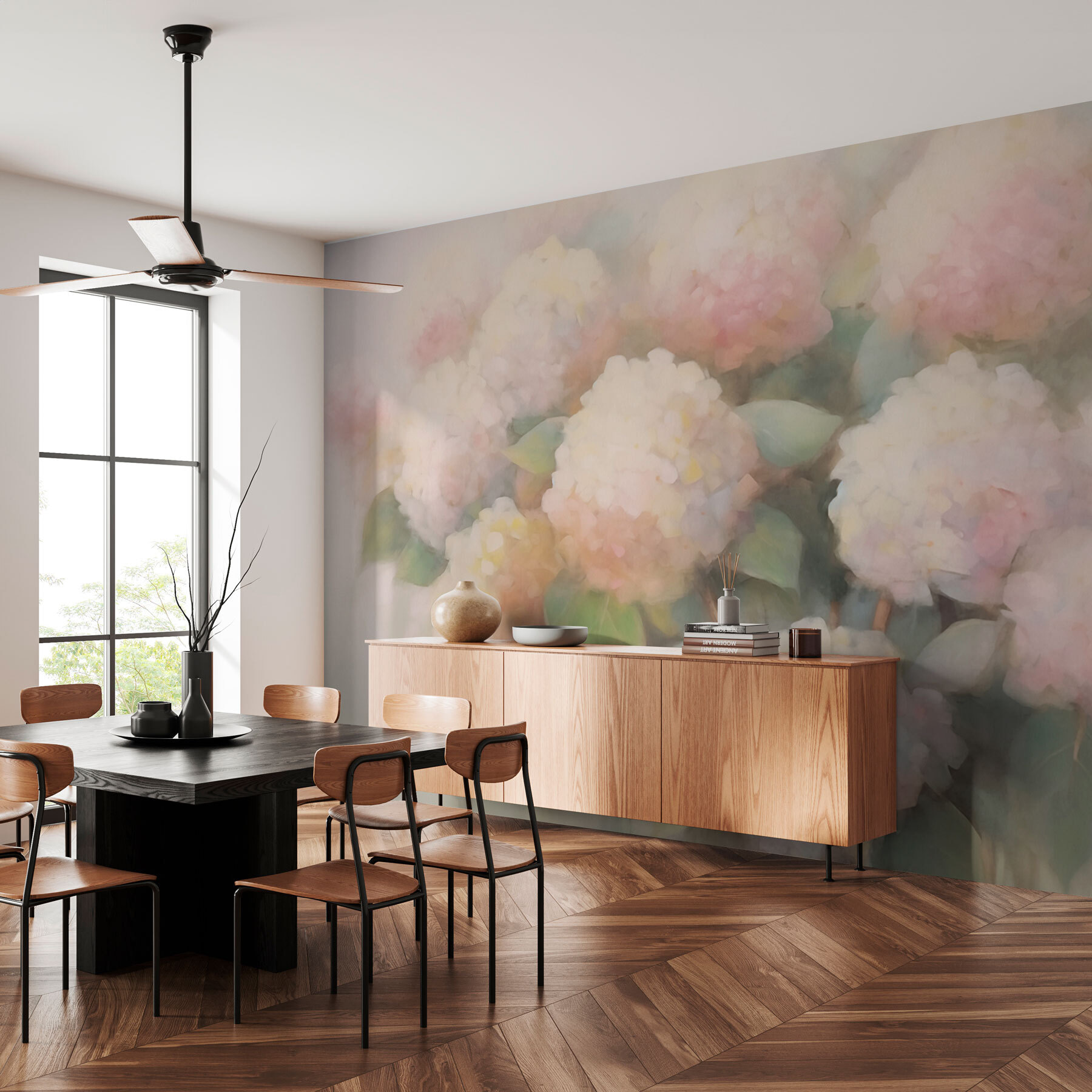 Ilumine um espaço com esta encantadora pintura mural de parede de flores num fundo branco de sonho. É como trazer uma suave brisa de primavera para dentro de casa! Imagine passar por ele e sentir o cheiro de flores frescas – exceto, sem alergias! Com delicados tons de rosa e creme, estas flores dão um toque suave e acolhedor, perfeito para uma sala de estar acolhedora ou um quarto sereno. Além disso, estão sempre na estação, ao contrário das pobres flores de exterior. Este mural não se limita a decorar; convida à calma e à alegria, fazendo com que cada dia seja um pouco mais agradável. Agora, quem é que não quereria isso?