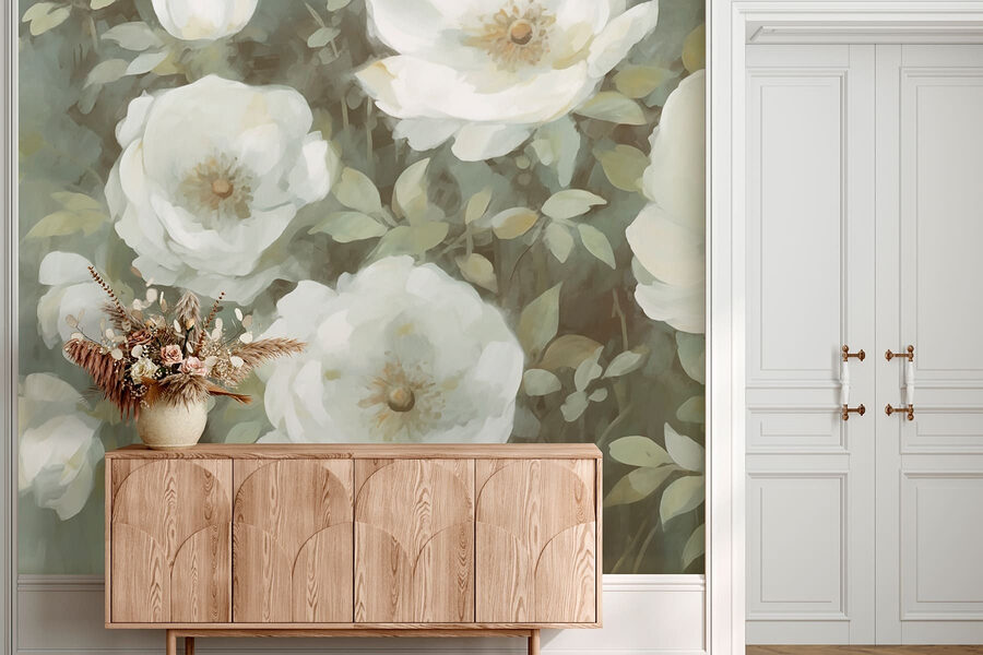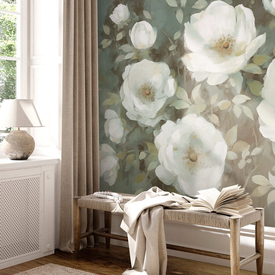 Papel de parede Pintura de flores brancas (REF: w08549v1)