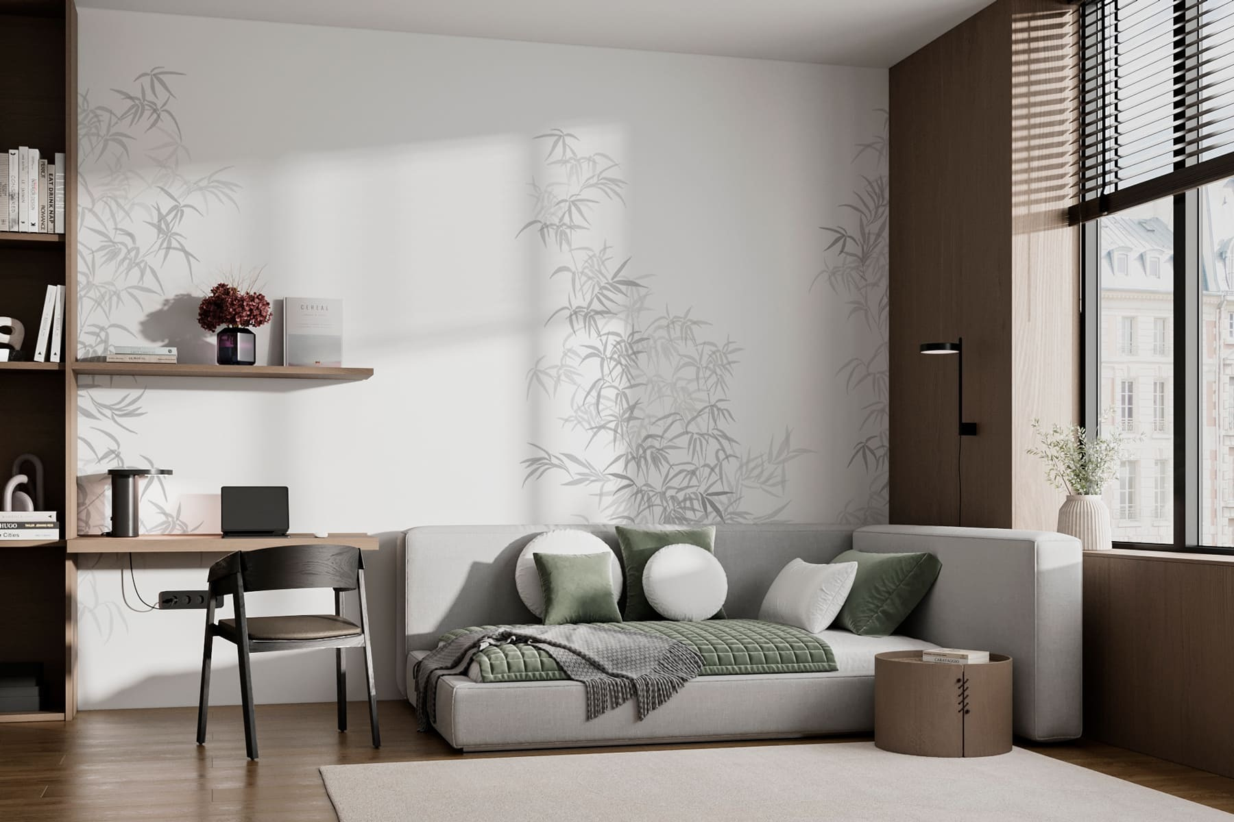 Veja exatamente como ficará o seu espaço com o novo papel de parede antes de comprar. Visualização profissional por designers especializados, sem qualquer custo ou obrigação de compra.