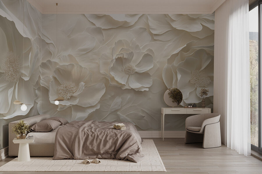 Imagine-se a relaxar com uma chávena de chá, com a elegância destas flores a acalmar a sua mente. É perfeito para um recanto de leitura acolhedor ou para uma sala de estar luminosa. Até as suas paredes ficarão elegantes – quem não gostaria de se gabar do poder das flores? Abrace a beleza e deixe que estas pétalas serenas o inspirem todos os dias.