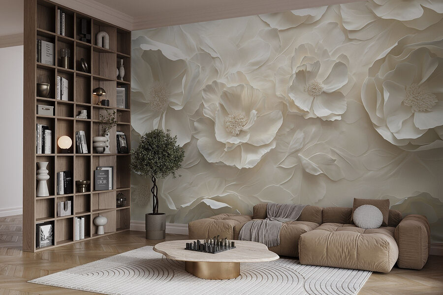 Transforme qualquer espaço com este deslumbrante “Papel de parede White Flower Wallpaper”. Imagine-se a entrar numa sala envolta no abraço suave de flores delicadas. As peónias e as rosas parecem sussurrar novos começos, convidando ao calor da sua casa. É como trazer um jardim para dentro de casa, sem os insectos incómodos e a necessidade de água.