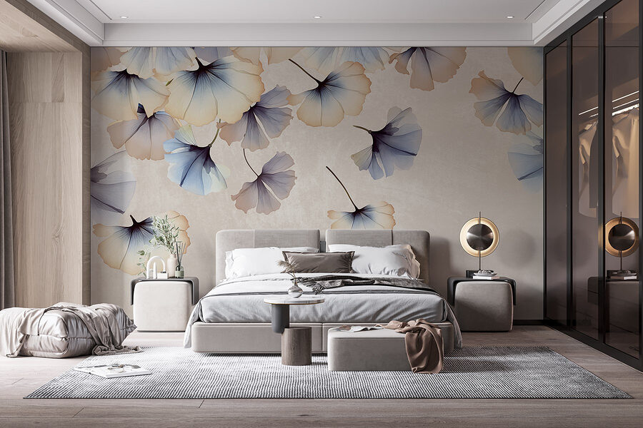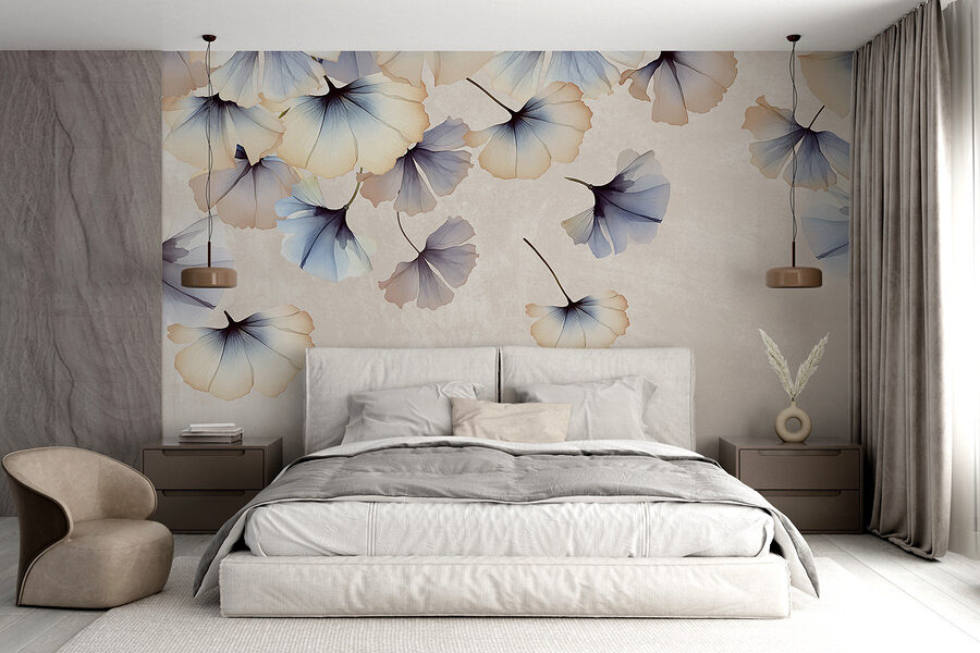 Imagine entrar numa sala onde delicadas pétalas parecem dançar ao sabor da brisa – este mural faz exatamente isso. Os seus tons suaves de aguarela de azul e creme criam um ambiente quase onírico, trazendo a beleza da natureza para dentro de casa. Imagine-se a relaxar no seu sofá, com um café na mão, enquanto estas pétalas suaves rodopiam à sua volta num ballet tranquilo, despertando alegria e acalmando o espírito. É como umas mini-férias mesmo na sua parede!