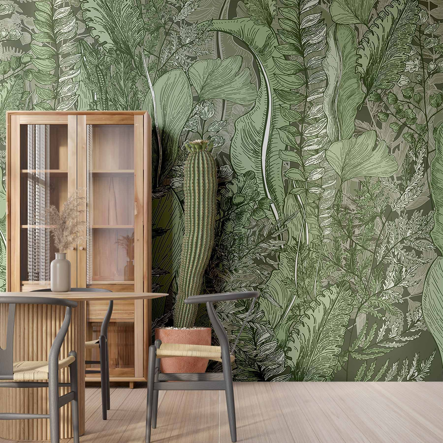 Transforme qualquer espaço num oásis sereno com o mural de parede “Lush Greenery”. É como dar um passeio por uma floresta vibrante sem sair do seu quarto! Repleto de folhas intrincadas e fetos delicados, este trabalho artístico convida a um toque de natureza dentro de casa. Imagine-se a aconchegar-se com um bom livro, rodeado por esta vegetação calmante – perfeita para sonhar acordado ou descontrair após um longo dia. Além disso, é uma solução elegante para aqueles que têm dificuldade em manter as plantas vivas (sem julgamentos!). Deixe que os tons suaves dêem vida às suas paredes e eleve a sua decoração sem esforço.