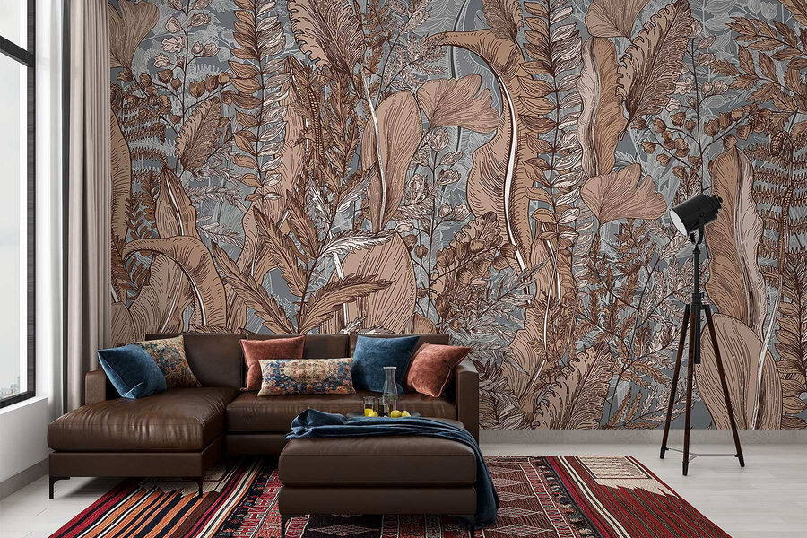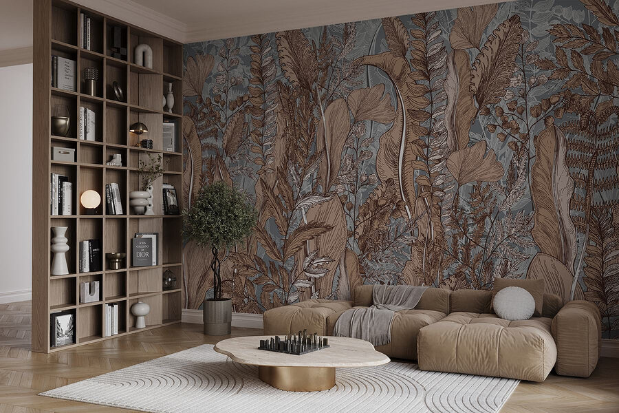 Transforme o seu espaço com este deslumbrante mural, “A Beleza da Natureza em Tons Terrosos”. Imagine plantas exuberantes a balançar suavemente numa brisa quente, trazendo o ar livre diretamente para a sua casa. As cores terra vão envolver a sua sala numa vibração acolhedora e convidativa, perfeita para relaxar depois de um longo dia. Imagine-se a beber café enquanto se delicia com a harmonia natural das folhas e dos ramos que abraçam confortavelmente as suas paredes. É como trazer um pedaço da floresta para dentro de casa – sem os insectos! Quer se trate de uma sala de estar ou de um recanto de leitura tranquilo, este mural irá certamente despertar alegria e uma sensação de calma.