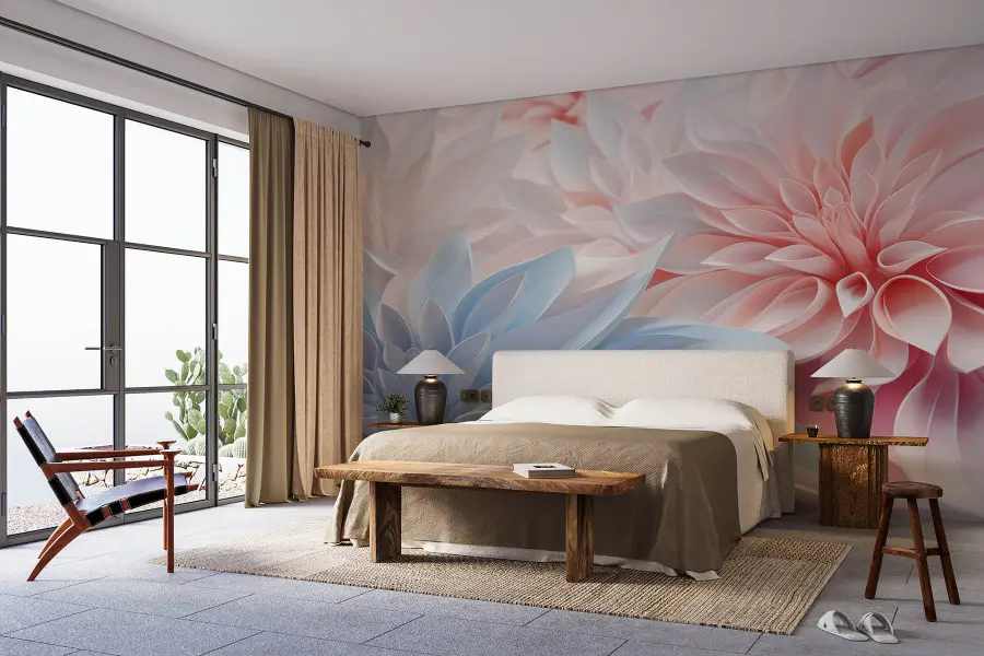 Transforme o seu espaço com este encantador mural de parede com um deslumbrante arranjo de flores de papel em tons pastel. Imagine a lufada de ar fresco que traz – cada flor em tons suaves de rosa e azul parece um abraço suave da primavera. Perfeito para um recanto acolhedor ou uma sala de estar animada, é como convidar um jardim para dentro sem a preocupação de regar.