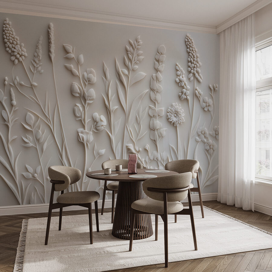 Transforme o seu espaço com este deslumbrante mural de parede com um delicado desenho de flores e folhas brancas. Imagine entrar numa sala cheia de toques suaves da natureza, onde cada olhar é como uma lufada de ar fresco. Este mural não se limita a ficar ali sentado; convida-o a entrar, quase sussurrando histórias de jardins serenos e tardes preguiçosas. Perfeito para criar um oásis de calma em sua casa, é como ter um jardim secreto mesmo na sua parede. Quer esteja a fazer café ou a relaxar com um livro, este design acrescenta uma vibração chique, inspirada na natureza, que torna cada momento um pouco mais doce. É simples, mas marcante – um belo pano de fundo que pode despertar alegria com a sua elegância sem esforço. Quem não gostaria de se rodear disso?