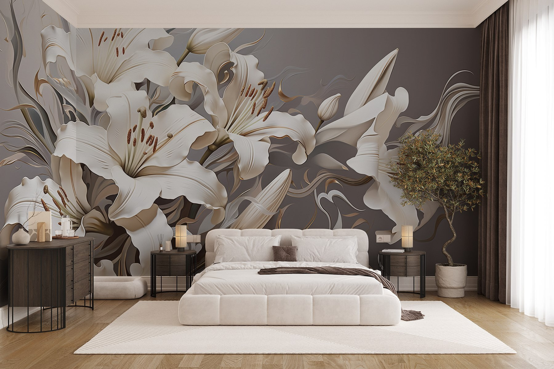 Transforme o seu espaço com este deslumbrante mural de parede com elegantes flores brancas que se misturam com castanhos suaves. É como convidar um jardim diretamente para a sua sala de estar – sem o pólen! Imagine estas flores a iluminar as suas paredes, acrescentando um toque de sofisticação sem se esforçar demasiado. As curvas suaves e os tons quentes criam um ambiente acolhedor, perfeito para as manhãs preguiçosas de domingo com um café na mão. Quer seja o pano de fundo para conversas acolhedoras ou um recanto de leitura tranquilo, este mural oferece uma pequena fatia da natureza que nunca murcha. Quem diria que a decoração da casa poderia ser tão sonhadora?