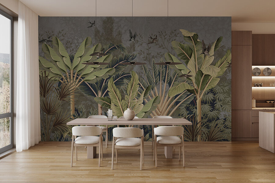 Transforme qualquer divisão numa fuga serena com este deslumbrante mural de parede de floresta tropical. Imagine entrar num paraíso exuberante, onde folhas vibrantes balançam suavemente e pássaros voam, trazendo sussurros da natureza. Não se limita a decorar uma parede; conta uma história, convidando-o a sonhar acordado com aventuras exóticas. Perfeito para um recanto de leitura acolhedor ou para uma sala de estar animada, acrescenta calor e um toque de ar livre. Além disso, é um ótimo início de conversa – espere que os convidados lhe perguntem se se tornou secretamente um explorador da selva! Abrace a natureza sem os mosquitos.