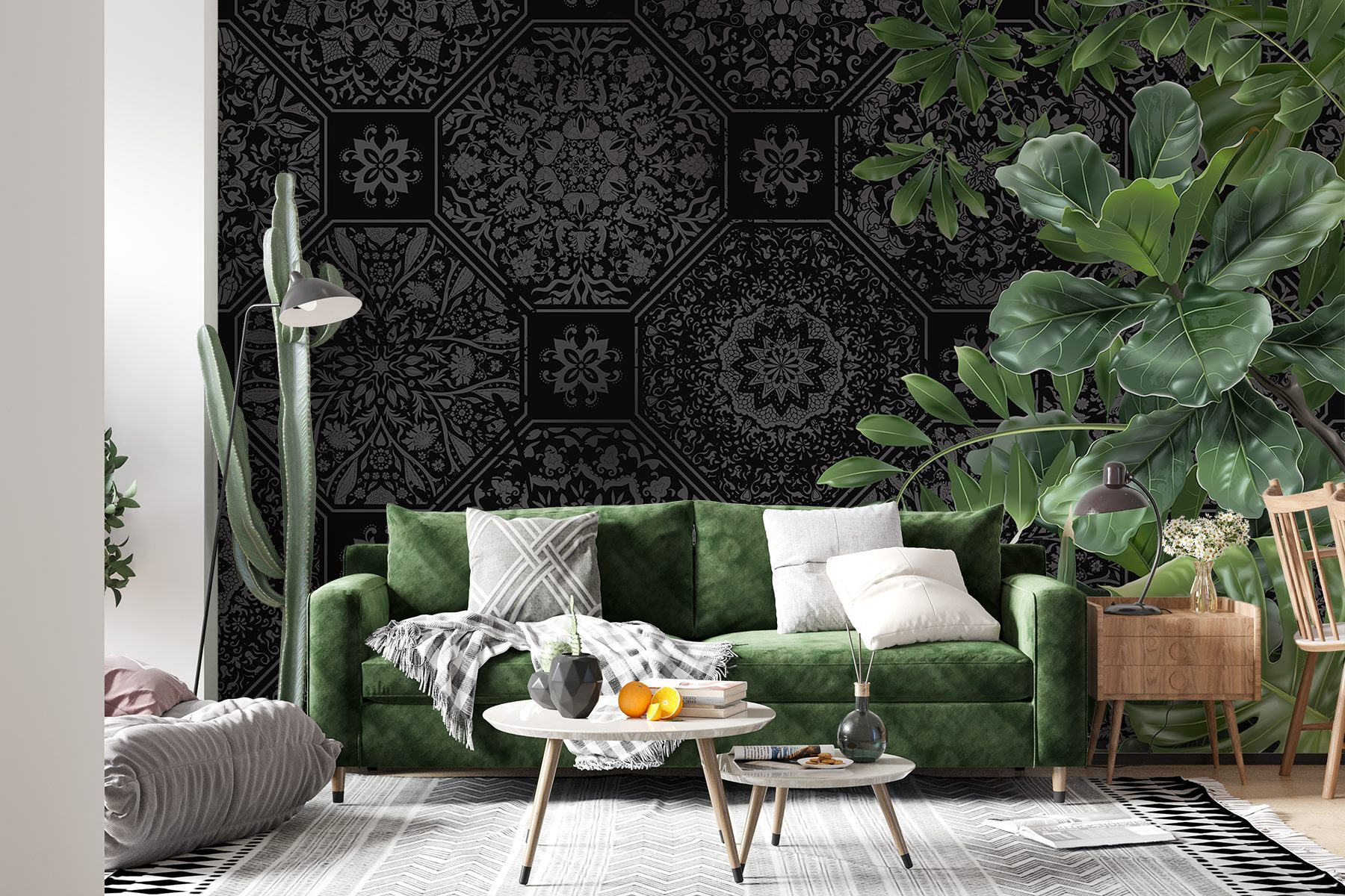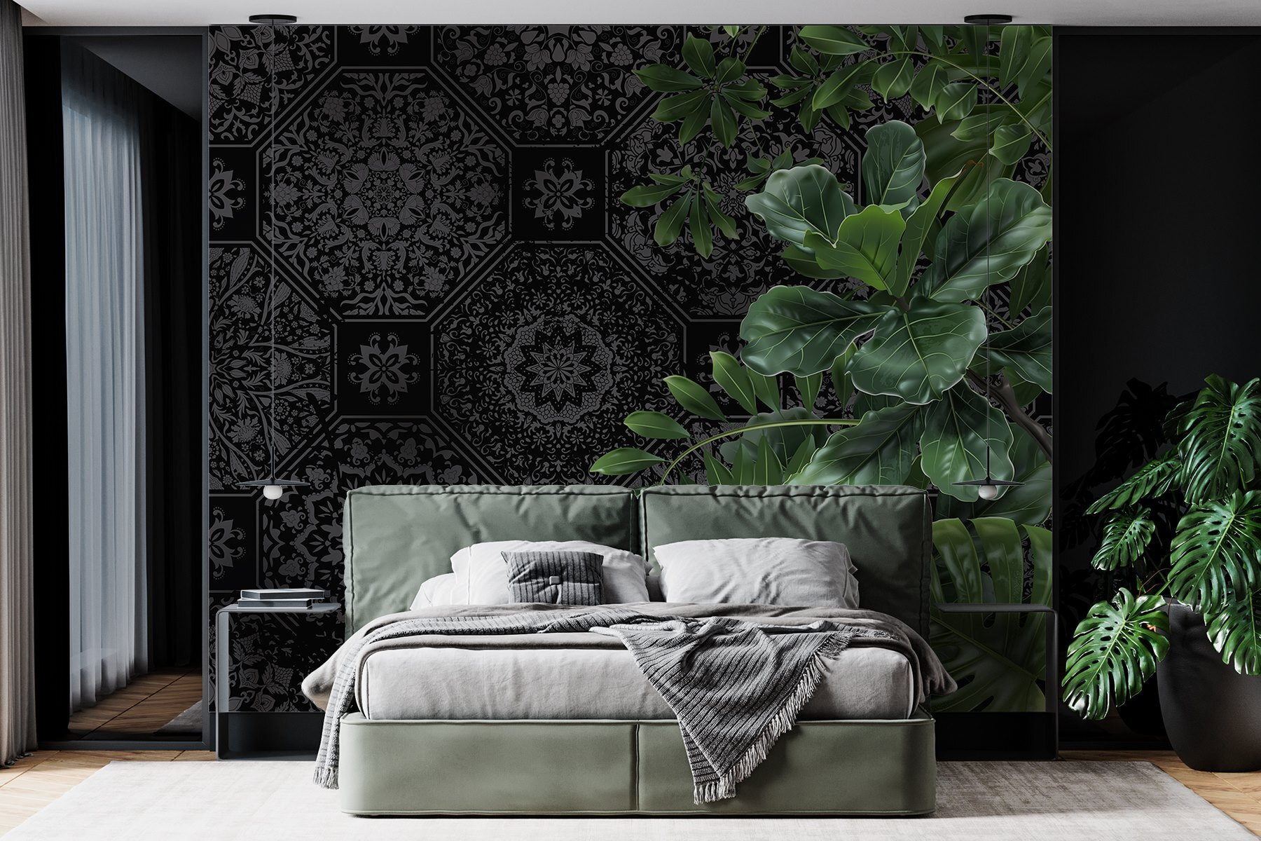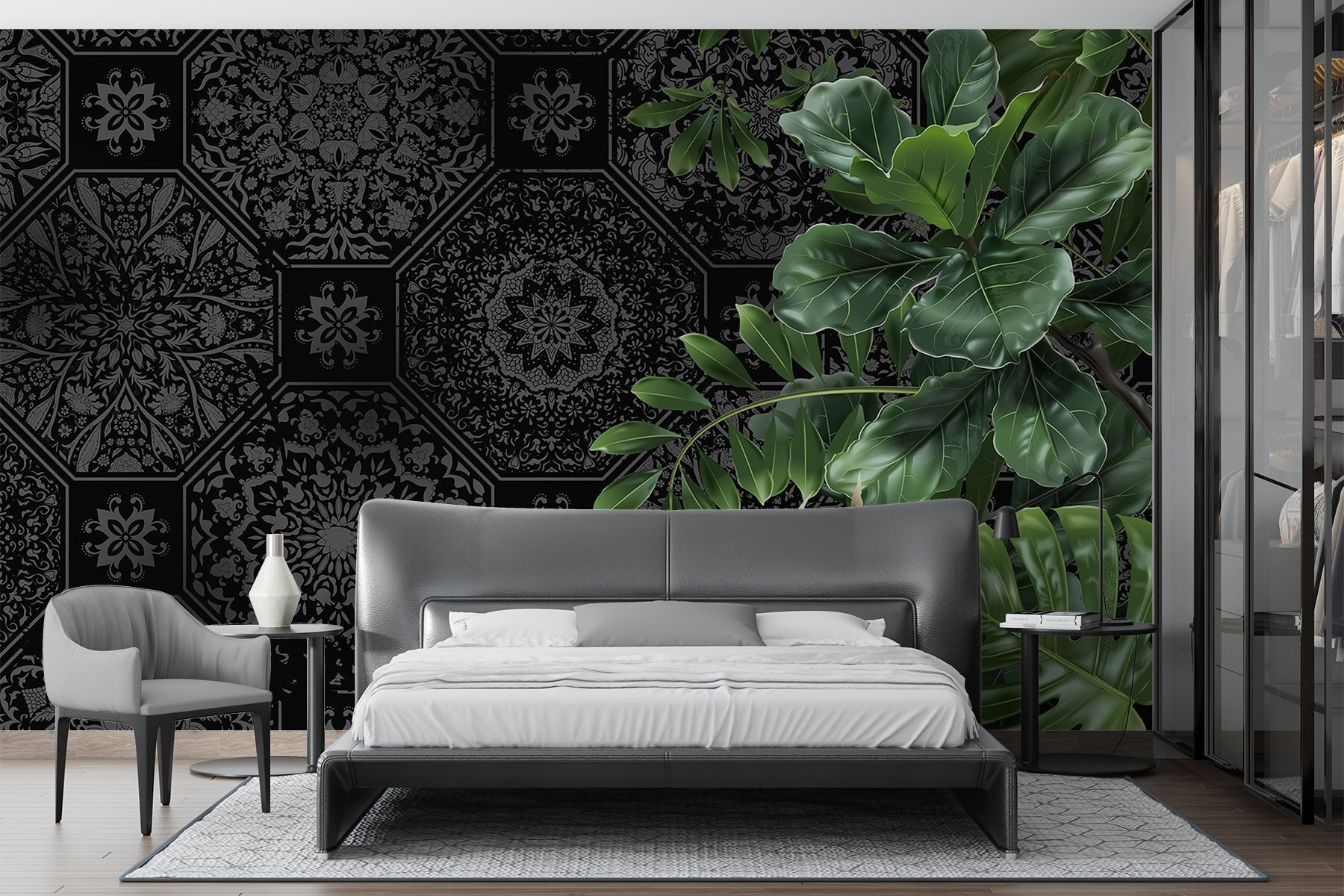 Transforme o seu espaço com este deslumbrante papel de parede preto e cinzento com folhas verdes exuberantes. Imagine entrar numa sala que se sente como uma fuga tropical! Os intrincados padrões geométricos proporcionam um fantástico pano de fundo, enquanto aquelas folhas vibrantes trazem um toque de vida e energia. Vai sentir-se como se estivesse rodeado pela natureza – menos os mosquitos, claro! Perfeito para um recanto de leitura acolhedor ou para uma parede de afirmação, este mural mistura sem esforço a elegância com um toque de natureza selvagem. Pronto para umas vibrações de estilo a sério? As suas paredes vão agradecer-lhe!