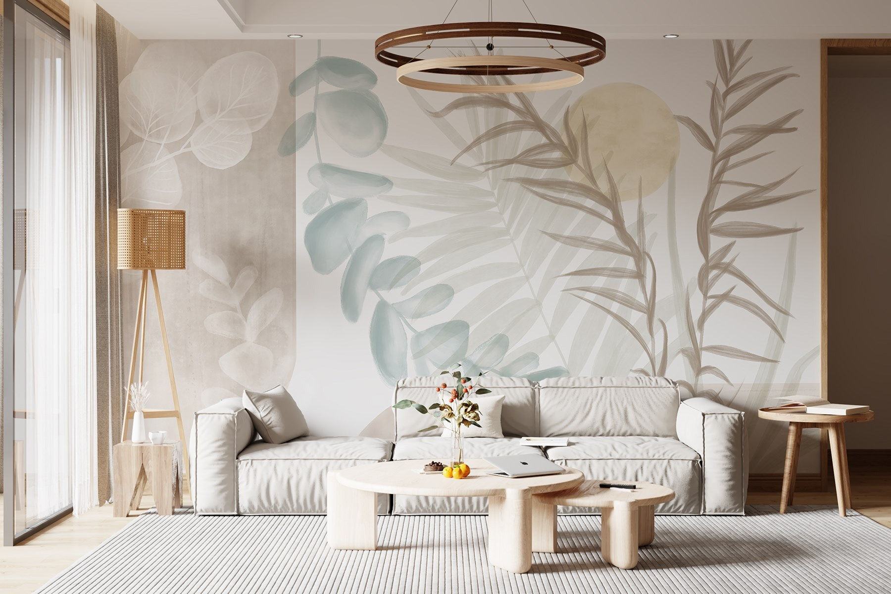 Transforme qualquer divisão num oásis sereno com “Soft Hues of Nature’s Beauty”. Este mural capta a essência calmante da natureza com verdes suaves e tons de terra que sussurram relaxamento. Imagine-se a beber o seu café da manhã, com estas suaves folhas de aguarela a dançar na parede, convidando a entrar uma pequena fatia do ar livre. Perfeito para uma sala de estar acolhedora ou um escritório em casa tranquilo, proporciona uma sensação de paz que pode ser difícil de encontrar no mundo agitado de hoje. É como se fosse a sua própria floresta pessoal – sem os insectos e os sapatos enlameados! Dê às suas paredes um abraço de beleza suave.