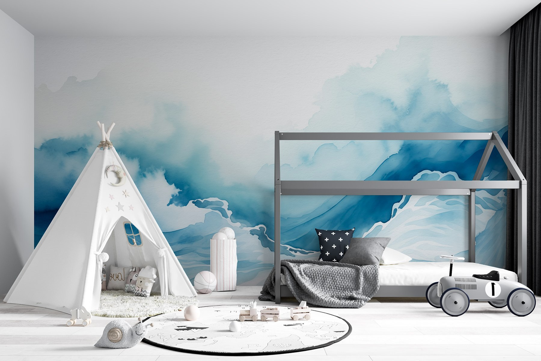 Imagine entrar numa sala e ser recebido pelo abraço suave de um mural de montanha em aguarela. Esta beleza, com azuis suaves e nuvens finas, capta a sensação serena de estar à beira do mundo. É como se a natureza o estivesse a chamar para descontrair. Pense em noites aconchegantes, a beber chá, enquanto olha para aqueles picos de sonho. A forma como as cores se conjugam? Pura magia. Perfeito para uma escapadela à beira-mar ou apenas para sonhar com uma! Este mural faz mais do que decorar; ele sussurra contos de aventura e tranquilidade, fazendo de cada parede uma tela para a imaginação. Por isso, quer seja um amante da montanha ou apenas goste de um pouco de talento artístico, esta peça traz calma a qualquer espaço.