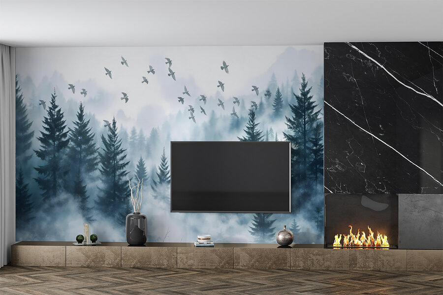 Transforme o seu espaço com o mural de parede “Birds Flying Over a Forest” – uma fuga serena mesmo na sua sala de estar. Imagine entrar e ser recebido por uma floresta enevoada, onde os pássaros voam entre as árvores altas. É como entrar num conto de fadas de sonho!