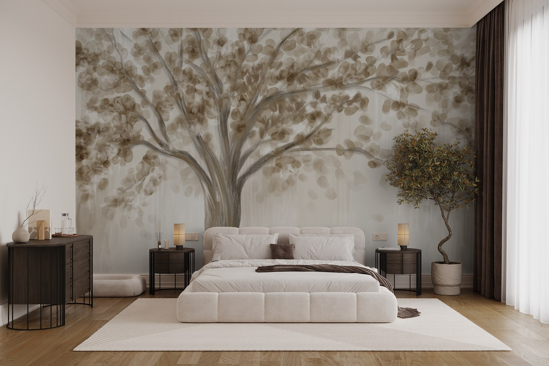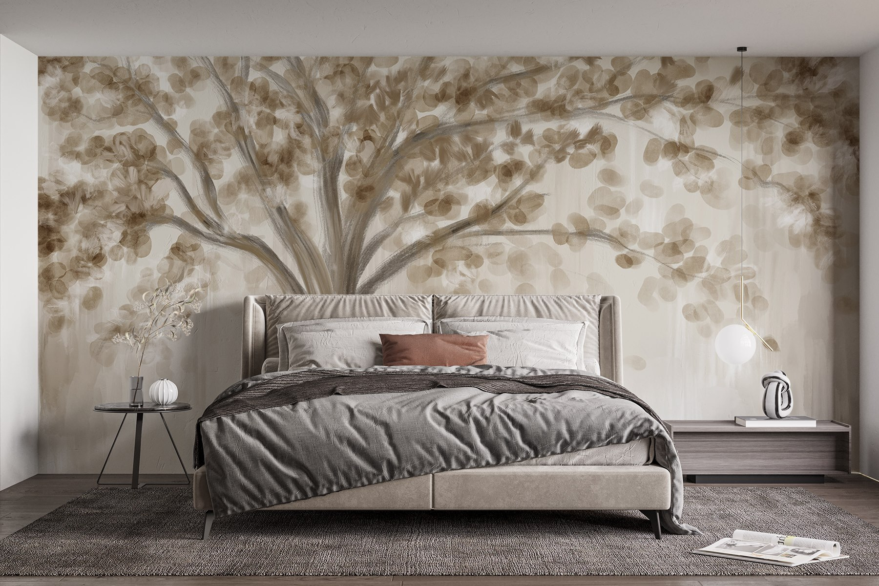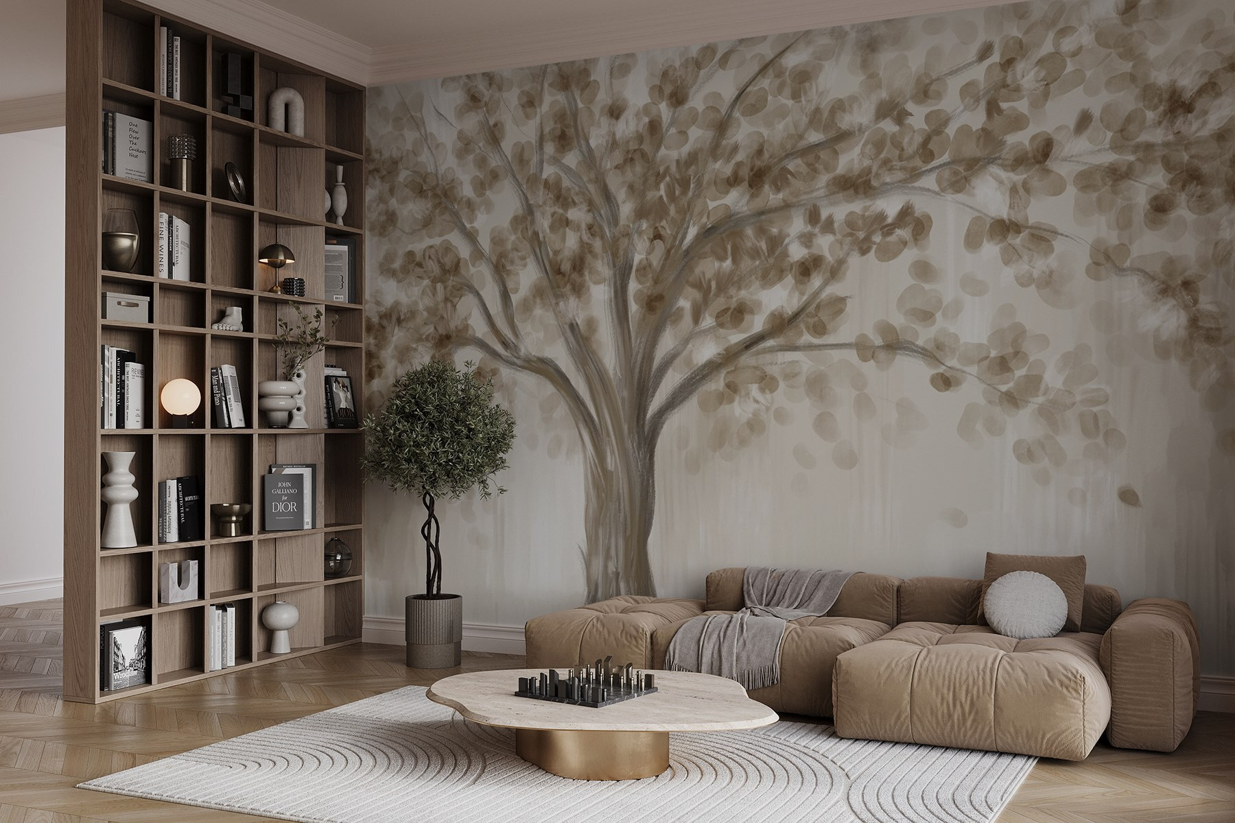 Imagine entrar numa sala que parece uma clareira tranquila na floresta, tudo graças à impressão “Papel de parede Tree with Leaves”. Este mural traz a natureza para o interior, com suaves tons de terra e padrões de folhas suaves que sussurram serenidade. É como convidar uma árvore a criar raízes no seu espaço – sem a manutenção, claro!