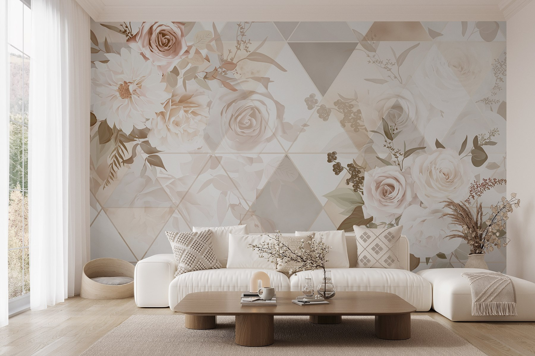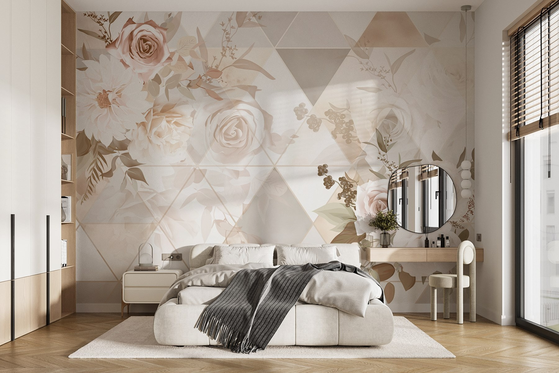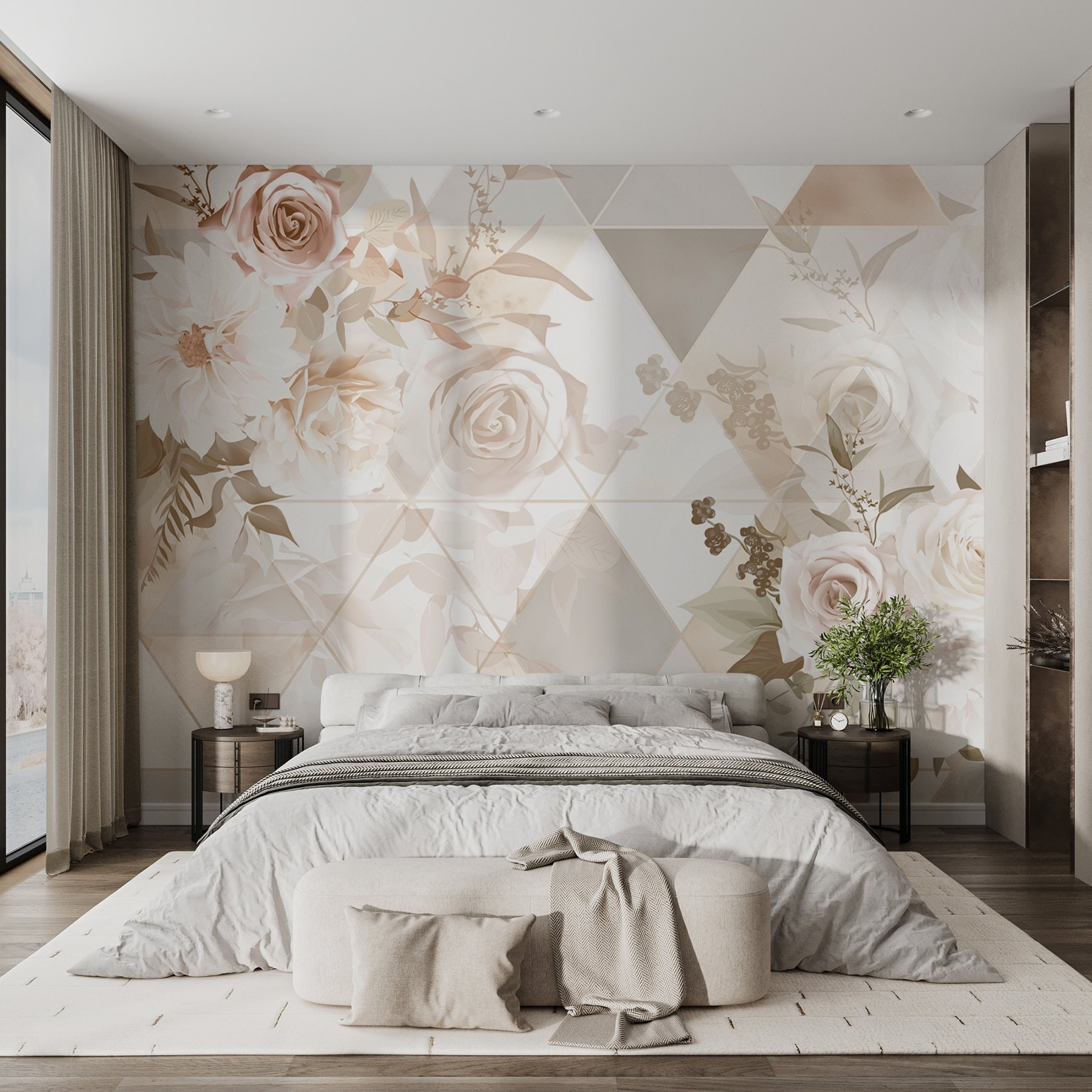 Transforme qualquer divisão num oásis sereno com este deslumbrante mural de parede com flores graciosas e triângulos chiques. É como trazer um jardim para dentro de casa, mas sem o incómodo da rega! Imagine bebericar o seu café da manhã enquanto se delicia com as cores suaves das peónias e das rosas – é uma vibração total. Este mural atinge um equilíbrio perfeito entre a elegância e o toque moderno, tornando-o num elemento de destaque para salas de estar ou recantos acolhedores. É como um abraço suave para as suas paredes. Vá em frente, deixe o seu espaço florescer! Quem não gostaria de ter um toque da beleza da natureza mesmo em casa?