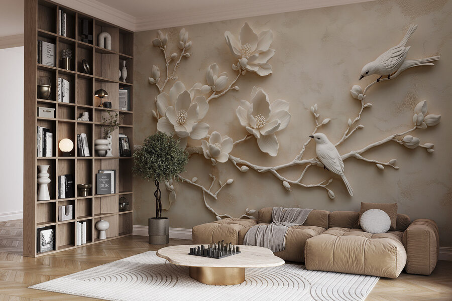 Imagine entrar numa sala onde a natureza sussurra suavemente através das paredes. Este mural, com os seus delicados pássaros brancos empoleirados num ramo esvoaçante adornado com flores, faz exatamente isso. A elegância subtil das flores convida a uma sensação de paz – perfeita para um recanto de leitura acolhedor ou um quarto sereno. É como trazer um toque de primavera para dentro de casa, sem alergias! Há algo de extravagante na forma como estes pequenos pássaros parecem estar a chilrear segredos uns para os outros. Sinta a calma tomar conta de si enquanto este mural transforma o seu espaço numa fuga de sonho. Perfeito para aqueles que apreciam a beleza da natureza sem a confusão da manutenção. É uma situação em que todos ficam a ganhar!