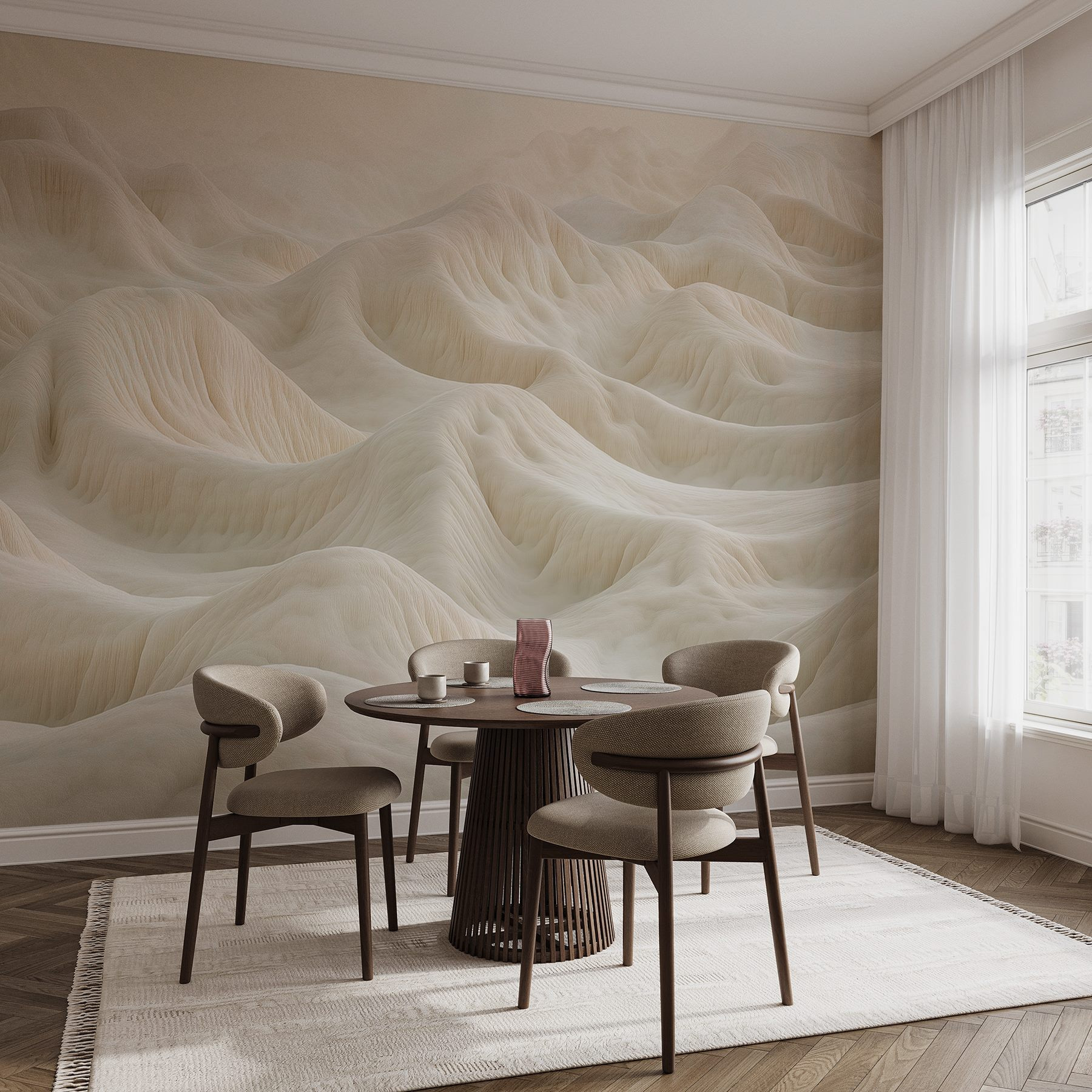 Transforme o seu espaço num sereno país das maravilhas de inverno com este deslumbrante mural que apresenta uma extensão de montanha coberta de neve. Imagine-se a acordar com tons de branco suaves e serenos que captam a quietude da natureza. É como trazer a tranquilidade de uma manhã gelada para dentro de casa – um cenário perfeito para aqueles serões acolhedores com uma chávena de cacau quente. Imagine os amigos a entrar, com os olhos a arregalarem-se de prazer com esta peça única, provocando conversas sobre aventuras no topo da montanha. Quer se trate de um quarto ou de uma sala de estar animada, este mural envolve o espaço em tranquilidade sem esforço, tornando-o verdadeiramente convidativo.
