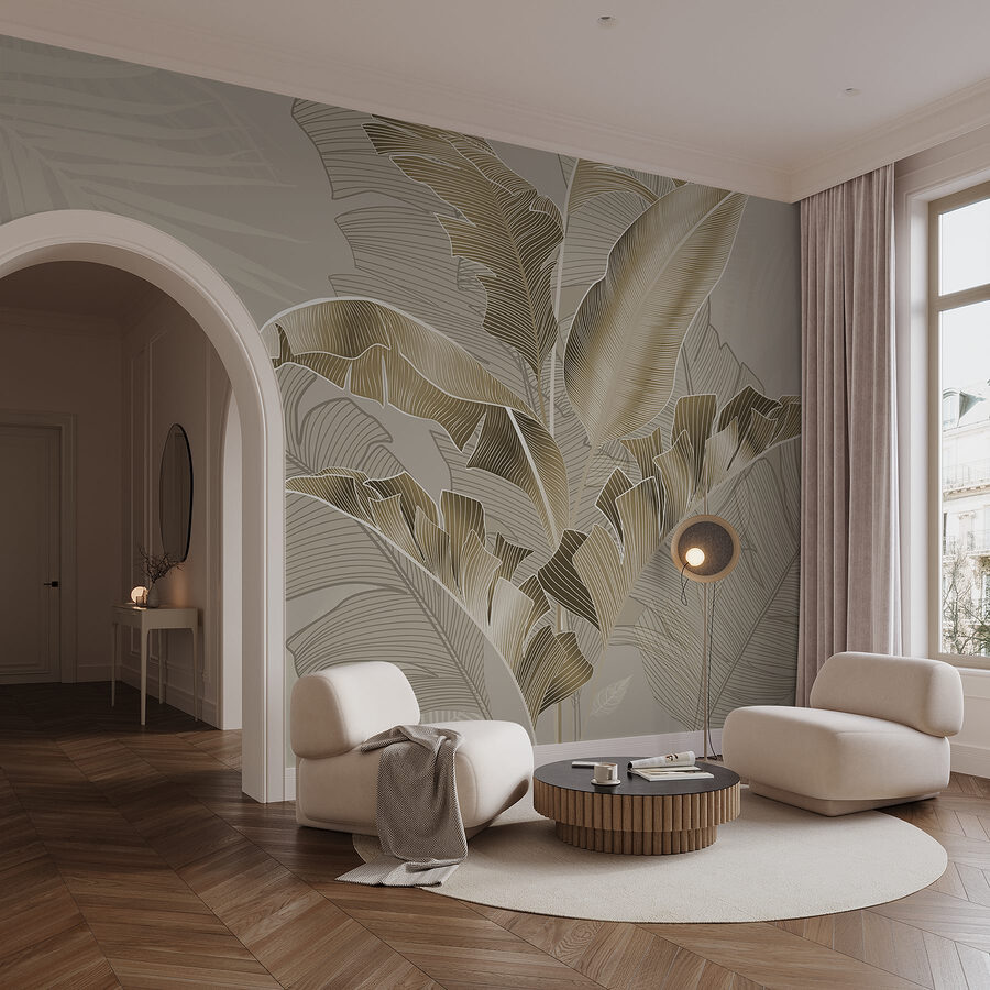 Imagine entrar numa selva serena onde a elegância se encontra com a natureza. Este mural de parede, “Folhas elegantes em tons suaves”, convida um toque tropical para o coração da sua casa. É como ter um pedacinho do paraíso — sem precisar de passaporte! Os tons suaves e os delicados desenhos de folhas criam uma atmosfera relaxante, perfeita para um recanto de leitura aconchegante ou uma sala de estar chique.