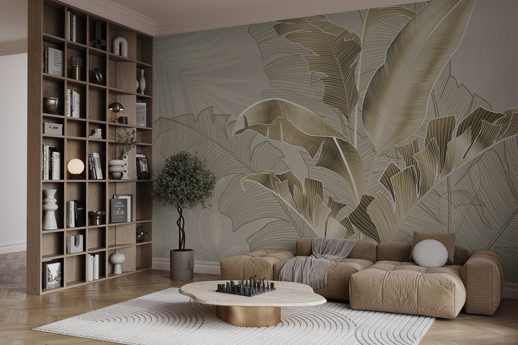Imagine entrar numa selva serena onde a elegância se encontra com a natureza. Este mural de parede, “Folhas elegantes em tons suaves”, convida um toque tropical para o coração da sua casa. É como ter um pedacinho do paraíso — sem precisar de passaporte! Os tons suaves e os delicados desenhos de folhas criam uma atmosfera relaxante, perfeita para um recanto de leitura aconchegante ou uma sala de estar chique.