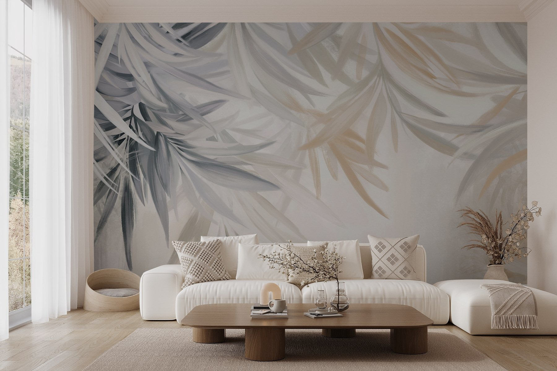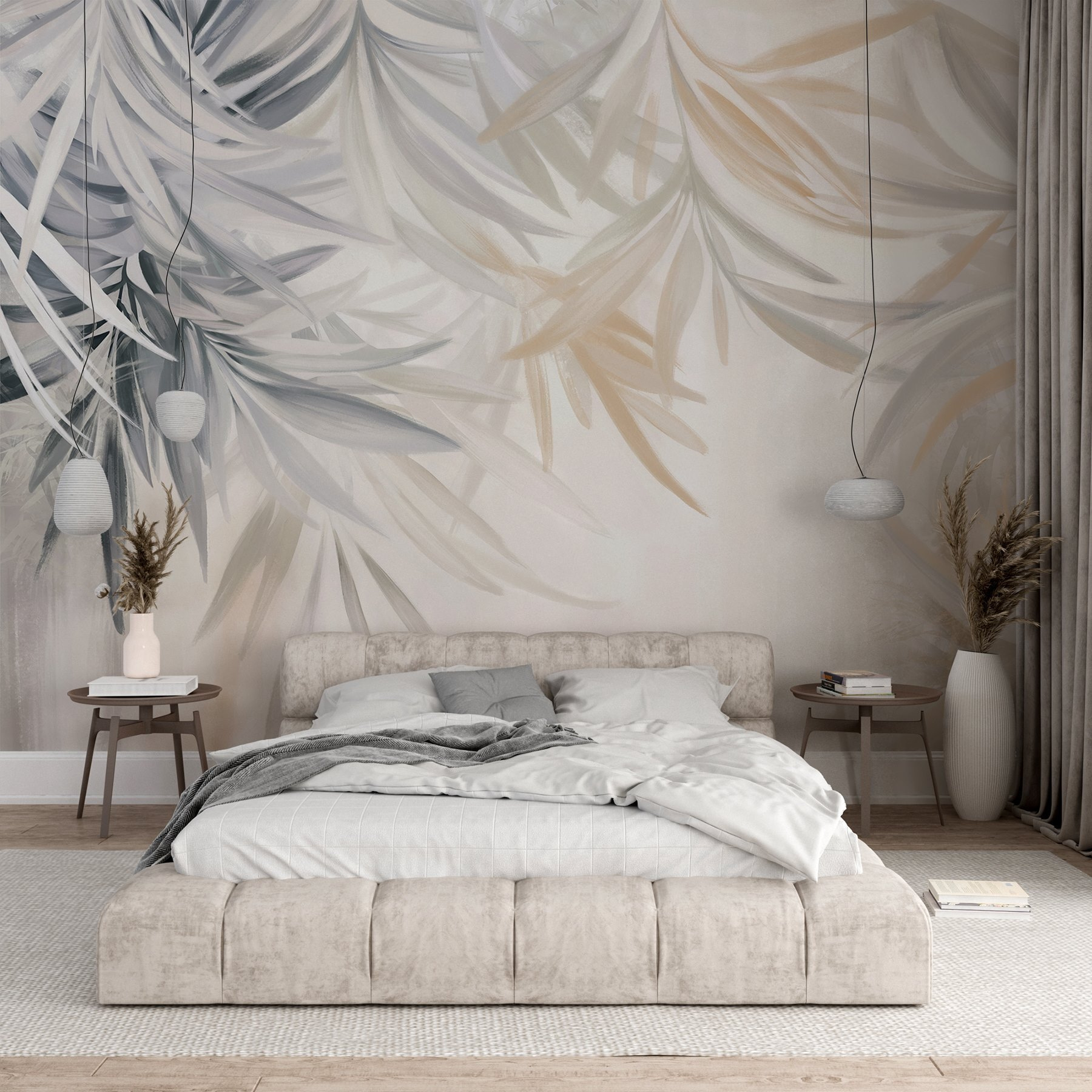 Transform any room with the “Delicate Leaves in Soft Hues” mural – it’s like a breath of fresh air for your walls! Imagine walking into your space and feeling instantly calmed by those soft, leafy designs, dancing gracefully in pastel shades. It’s perfect for anyone who wants an easy escape from the chaos of everyday life.