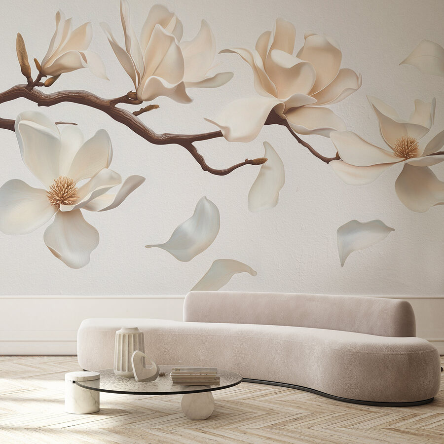 Transforme qualquer espaço com este impressionante mural de parede com delicados ramos adornados com flores brancas e pétalas. É como ter um jardim primaveril na sua sala de estar, sem os espirros. Imagine-se a beber café enquanto contempla essas flores — elas quase parecem balançar com a brisa. Este mural traz uma vibração leve e arejada que convida ao calor e ao relaxamento. Um cenário perfeito para conversas aconchegantes ou momentos tranquilos, é difícil não sorrir ao entrar na sala. Além disso, é uma maneira fácil de elevar a decoração sem esforço. Floresça onde você está plantado, certo?
