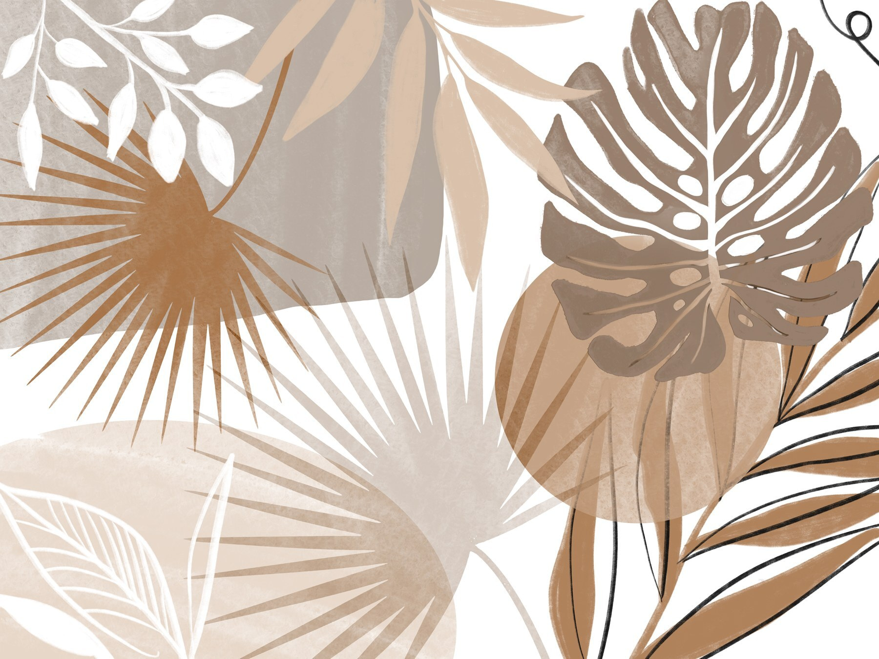 Transforme o seu espaço com este mural de parede cativante, que apresenta um design abstrato inspirado na natureza. Imagine entrar no seu quarto e ser recebido por uma explosão deslumbrante de tons de terra e folhagem graciosa. É como trazer uma fatia de um oásis tropical diretamente para a sua casa.