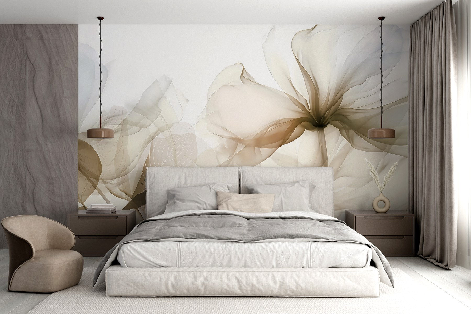 Imagine entrar num espaço que parece uma galeria de arte — é isso que este mural proporciona! «Delicate Hues of Nature’s Beauty» capta a elegância suave das flores, como um sussurro delicado da própria natureza. É como se um pintor tivesse espalhado cores delicadas pela parede, convidando todos a parar e respirar um pouco mais fundo.