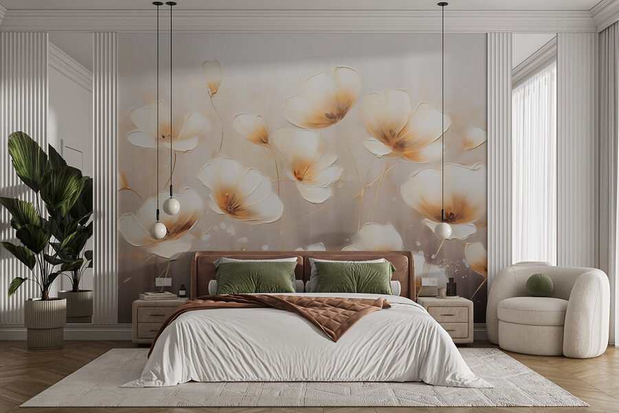 Imagine entrar numa sala que parece uma suave manhã de primavera, graças a este impressionante mural de parede. Intitulado “Mural de parede com pintura de flores sobre fundo branco”, capta delicadas flores a dançar num cenário suave e convidativo. É como trazer um jardim para dentro de casa sem necessidade de regador.