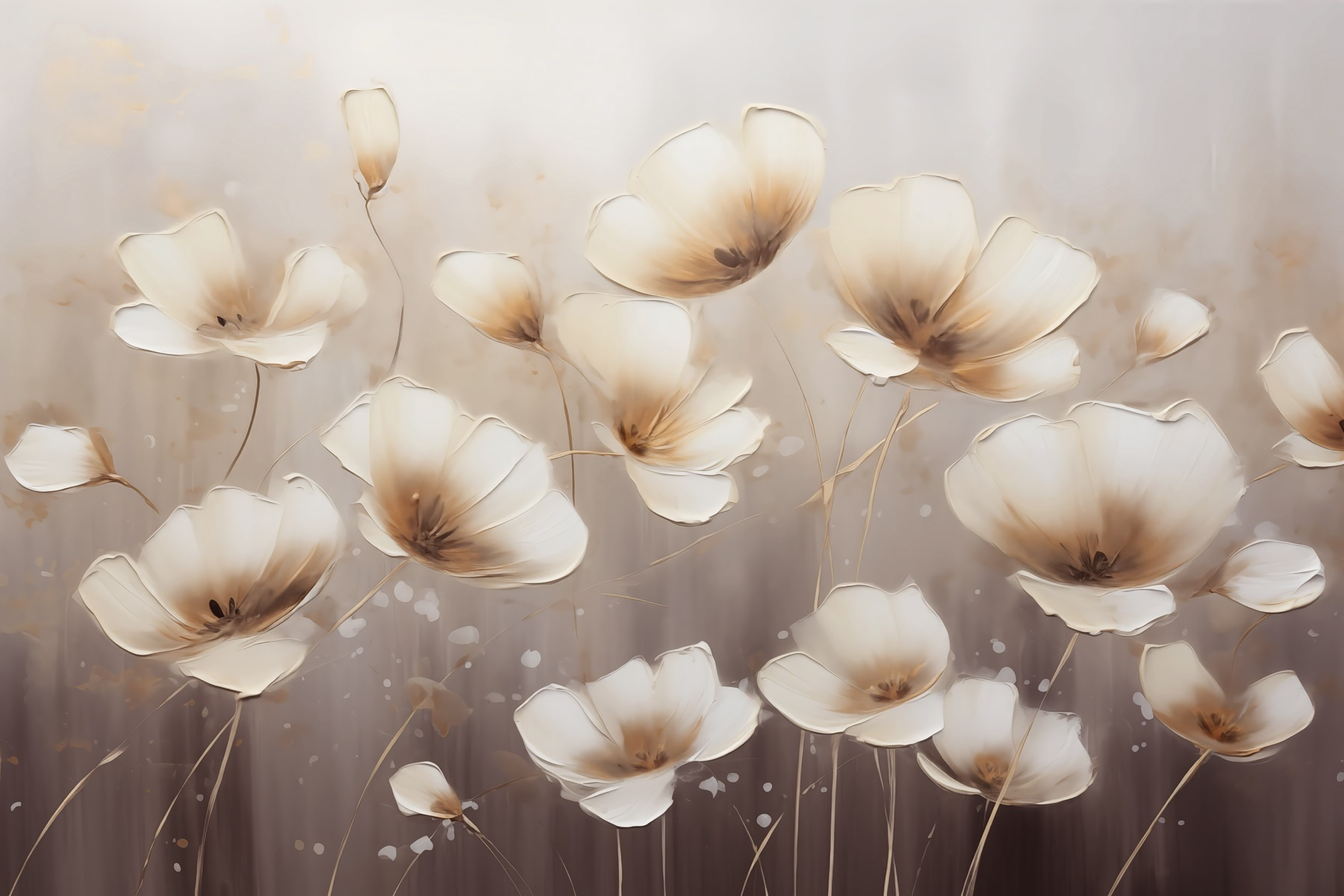 Dê vida ao seu espaço com este impressionante mural de parede com delicadas flores desabrochando contra um fundo branco suave. É como um sussurro suave da primavera, mesmo que esteja nevando lá fora. Imagine acordar todas as manhãs com estas belas flores, que o incentivam a sair da cama com o seu charme elegante. Perfeito para qualquer divisão, seja uma sala de estar acolhedora ou um quarto tranquilo. Este design em aquarela acrescenta um toque de elegância moderna e intemporal, fazendo com que as suas paredes pareçam um jardim encantador. Quem diria que um mural poderia fazer com que se sentisse tão acolhido e confortável?