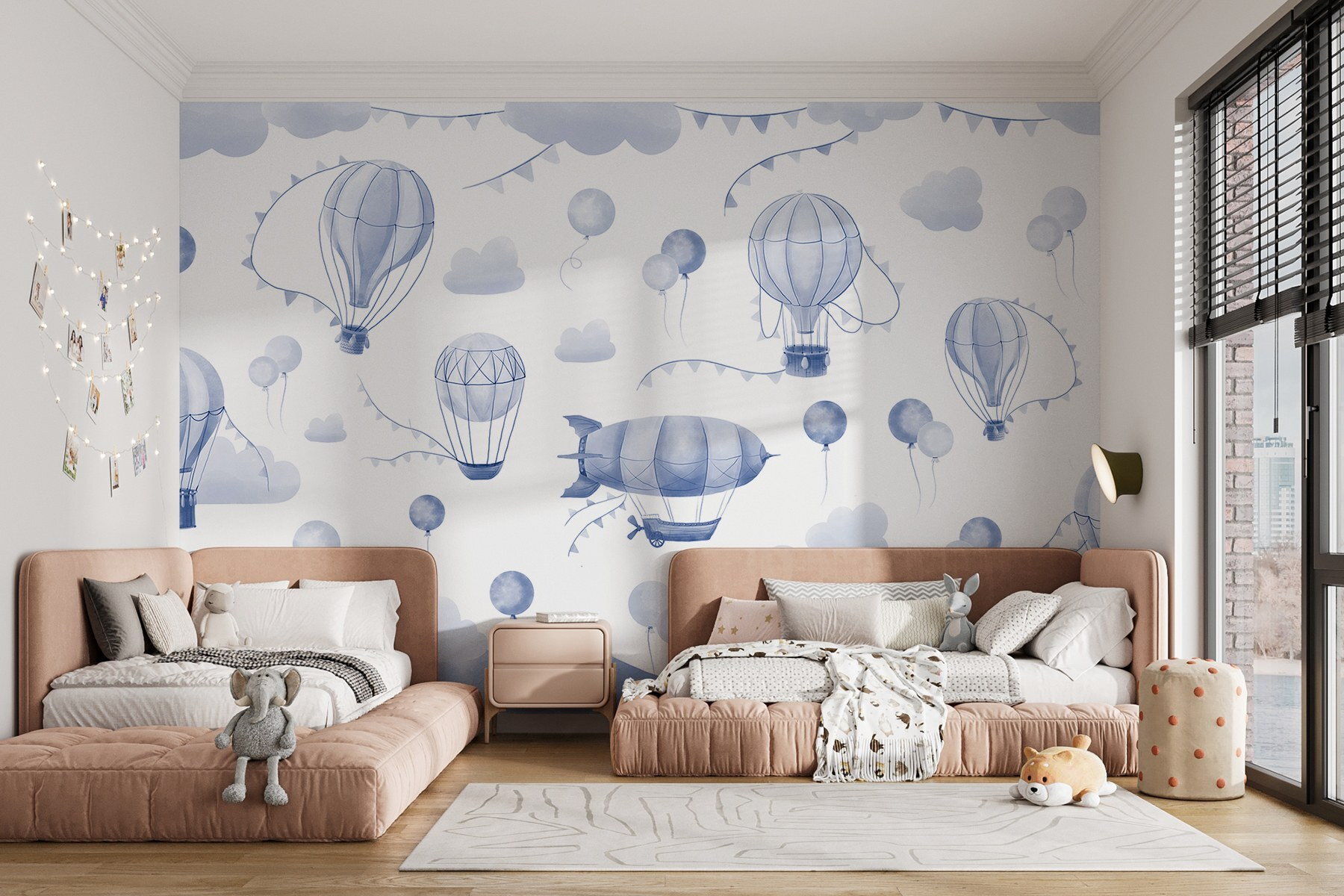 Imagine acordar com um mar suave de nuvens e balões de ar quente caprichosos flutuando pelas suas paredes. Este mural, com uma gama divertida de tons de azul, convida a sonhar acordado com voos sobre montanhas majestosas. É como umas férias instantâneas sem ter de desfazer as malas. Perfeito para um quarto de bebé acolhedor ou um espaço de trabalho criativo, acrescenta um toque de calma e inspiração. Imagine as crianças a apontar para cada balão, rindo enquanto inventam histórias sobre para onde eles vão. Quem sabe — talvez um deles os leve a uma aventura! Este mural é simplesmente uma lufada de ar fresco para qualquer espaço.
