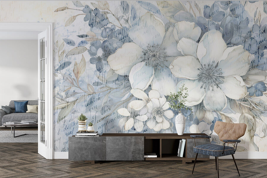 Transformar uma parede monótona num paraíso florido é tão fácil quanto com este “Mural de Flores e Folhas”. Com suaves tons de aguarela que dançam pela superfície, convida a natureza a entrar em qualquer espaço. Imagine-se relaxando na sua sala de estar, rodeado por estas flores calmantes, a saborear um café numa preguiçosa manhã de domingo. Há algo de encantador em ver flores que não murcham! Além disso, as subtis sugestões de texto acrescentam um pouco de intriga — como um poema sussurrado suavemente. Perfeito para os amantes da natureza ou para quem quer adicionar um toque fresco à sua decoração. Quem não sorriria ao ver isto?