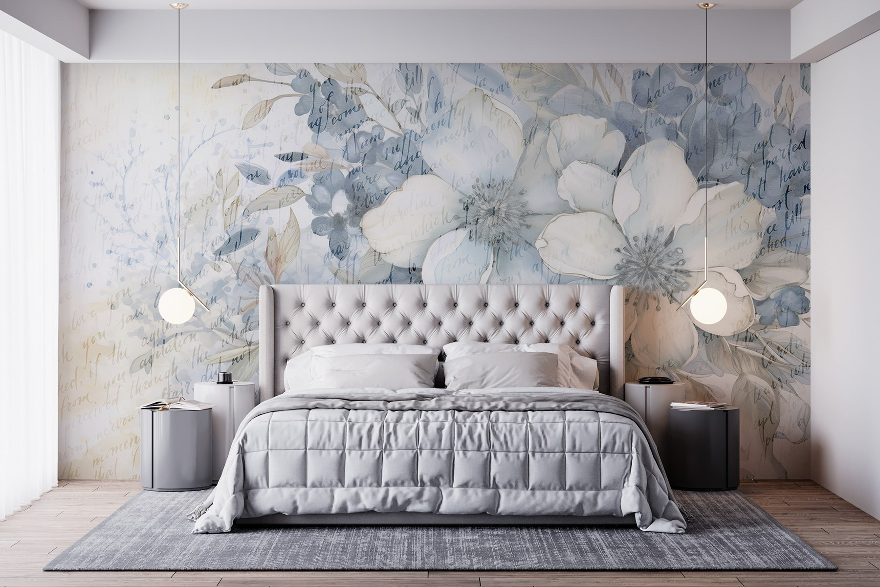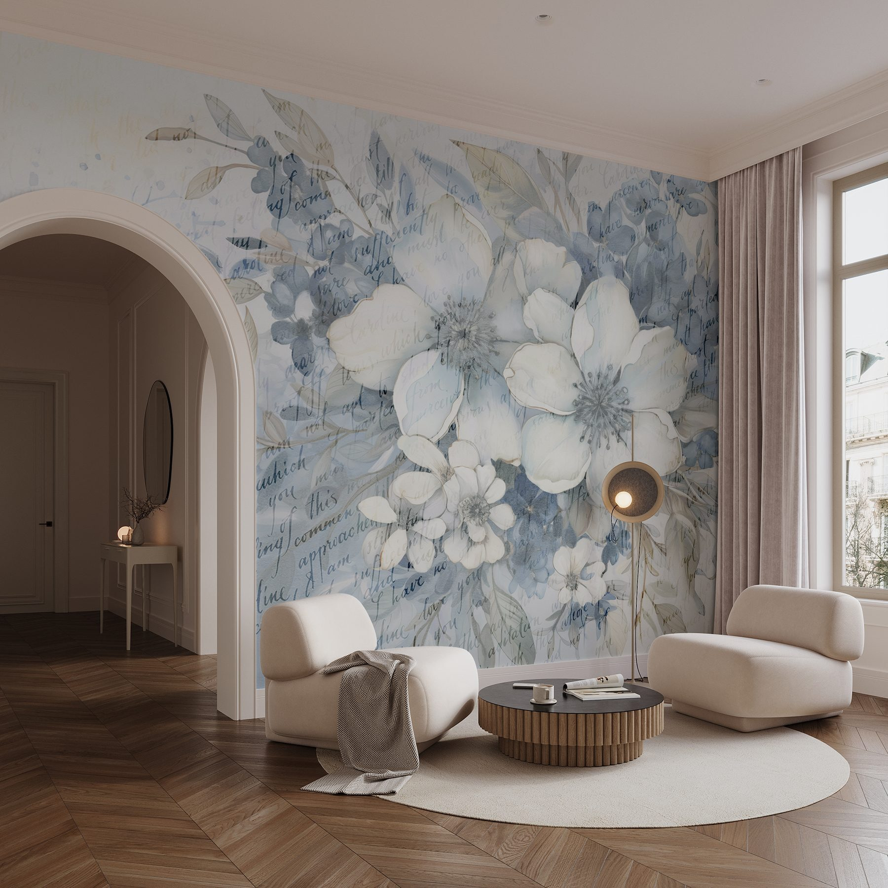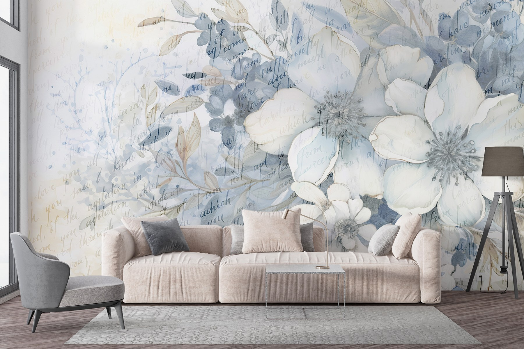 Transformar uma parede monótona num paraíso florido é tão fácil quanto com este “Mural de Flores e Folhas”. Com suaves tons de aguarela que dançam pela superfície, convida a natureza a entrar em qualquer espaço. Imagine-se relaxando na sua sala de estar, rodeado por estas flores calmantes, a saborear um café numa preguiçosa manhã de domingo. Há algo de encantador em ver flores que não murcham! Além disso, as subtis sugestões de texto acrescentam um pouco de intriga — como um poema sussurrado suavemente. Perfeito para os amantes da natureza ou para quem quer adicionar um toque fresco à sua decoração. Quem não sorriria ao ver isto?