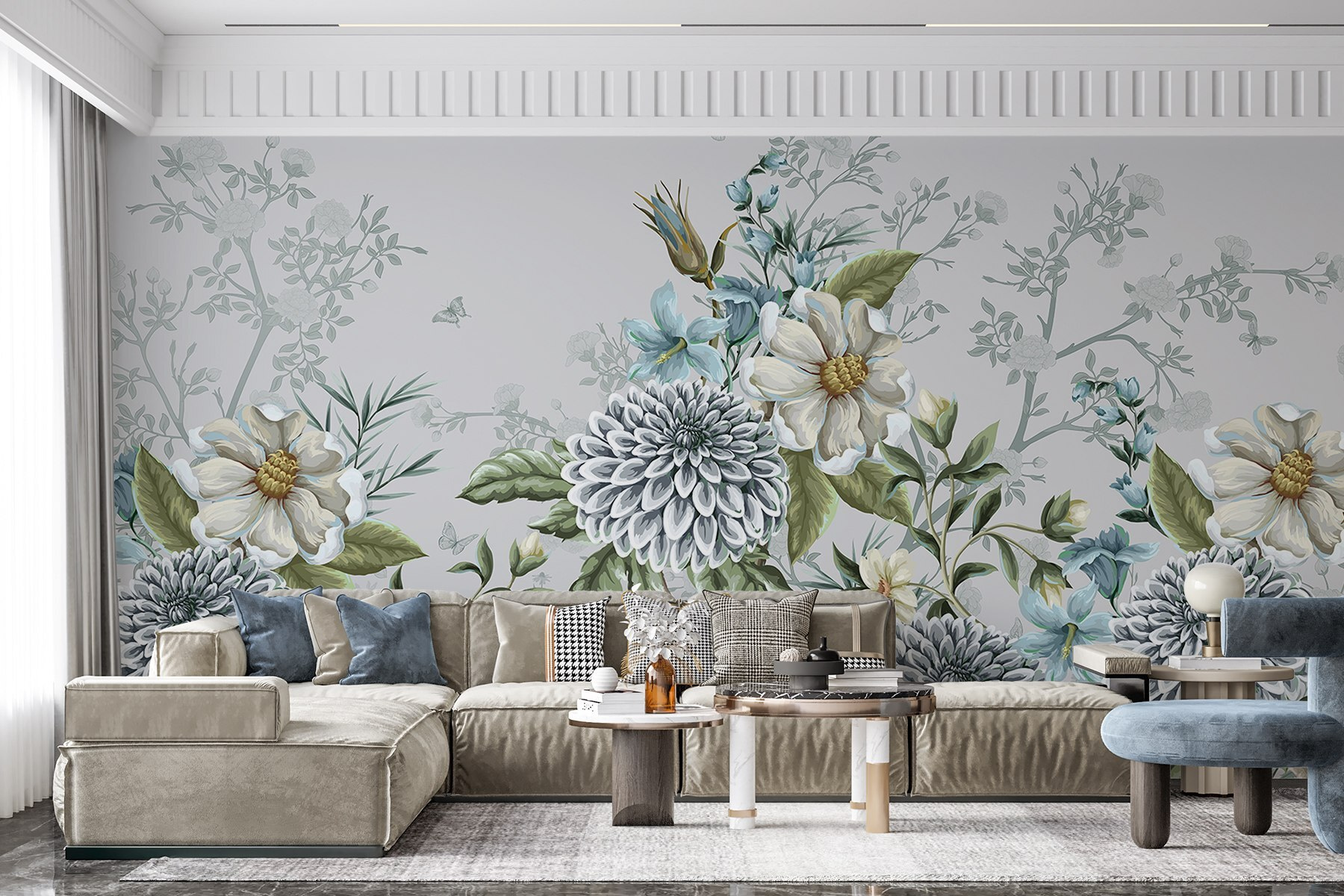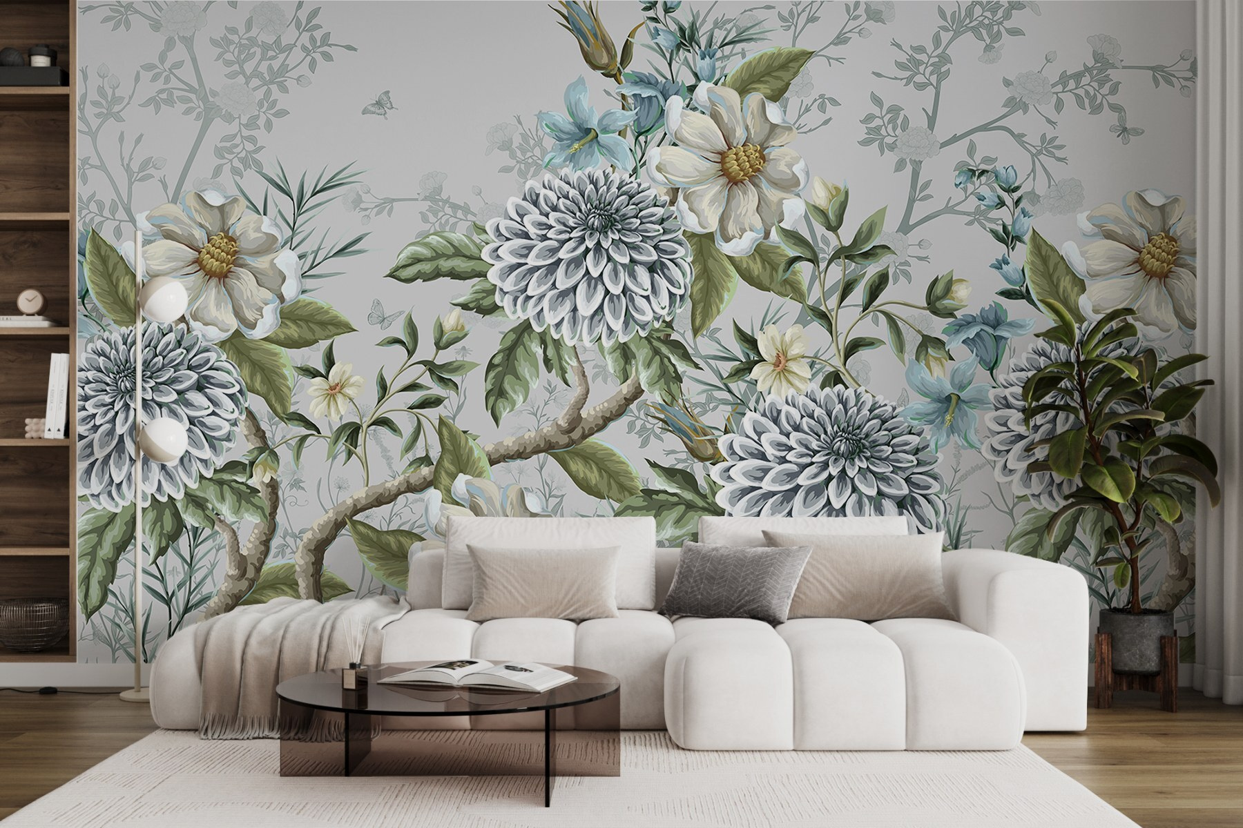 Transforme o seu espaço com este impressionante mural de parede com um elegante desenho floral em tons suaves e discretos. Imagine entrar num jardim sereno, onde as cores suaves transmitem calma e sofisticação. As flores intrincadas destacam-se contra o fundo subtil, criando uma atmosfera acolhedora e chique. É como ter um pedaço da natureza na sua sala de estar! Perfeito para um recanto de leitura ou como pano de fundo para fotos de família, este mural adiciona um toque de fantasia sem ser demasiado chamativo. Quem não gostaria de chegar a casa e encontrar isto?