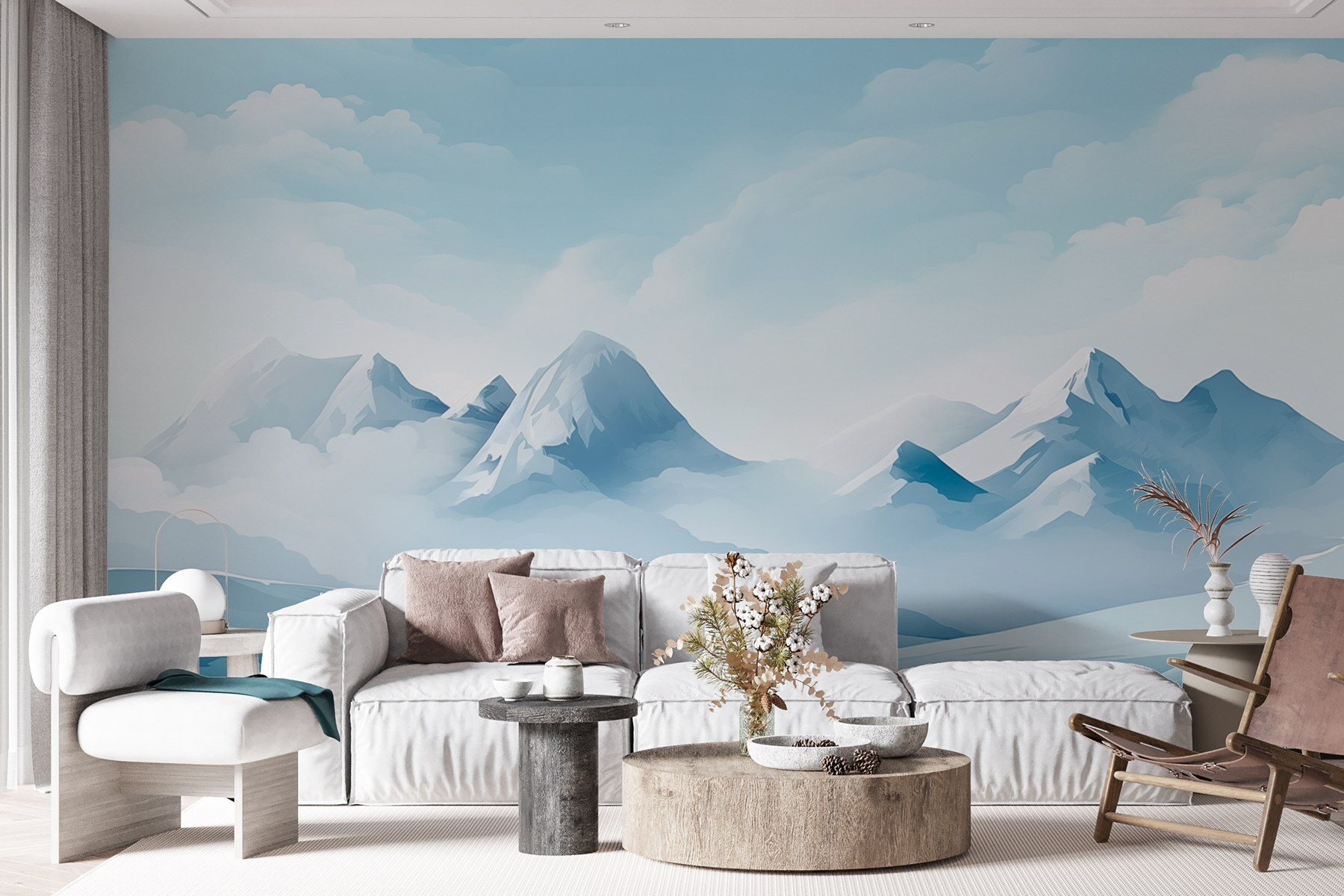 Transform any space with this stunning wall mural featuring a snowy mountain range poking through fluffy clouds. It’s like having a tiny piece of the great outdoors right in your living room. Imagine sipping your morning coffee while gazing at those majestic peaks, feeling the peaceful vibes wash over you—minus the frostbite, of course!