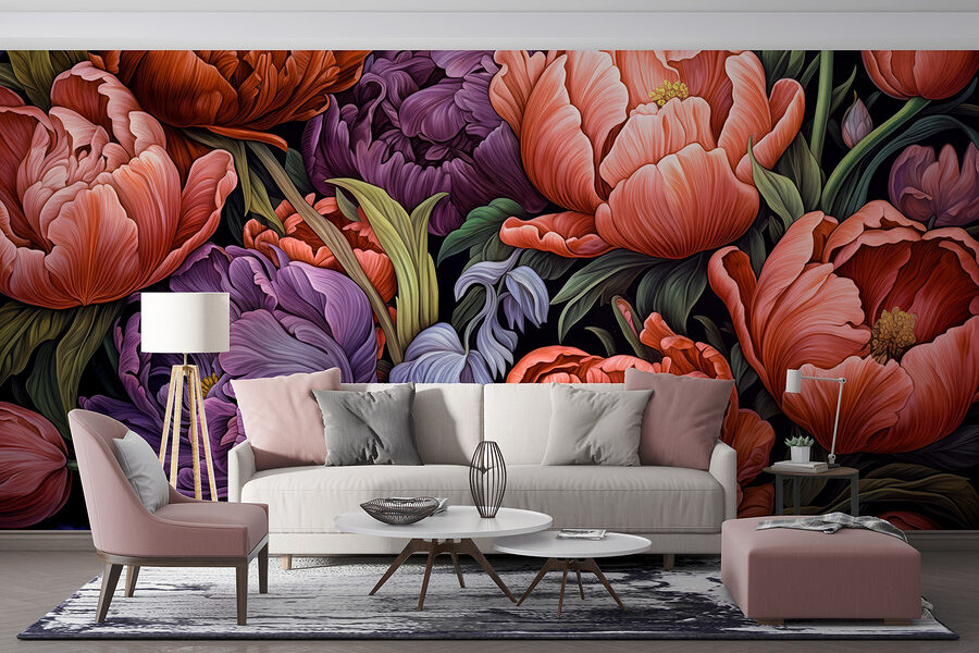 Transforme a sua parede num oásis florido com o mural “Vibrant Blossoms in Rich Colors” (Flores vibrantes em cores ricas). Imagine entrar num jardim repleto de peônias exuberantes e tulipas elegantes, cada pétala sussurrando histórias da primavera. Os tons profundos e ricos dançam contra um fundo subtil, criando uma atmosfera acolhedora que convida ao devaneio. Cada olhar parece um passeio pela natureza, dando vida a qualquer espaço. Perfeito para aquela parede que você tem ignorado, você quase espera ver borboletas voando por ali. Adicione este mural e será como presentear seu quarto com um buquê que nunca murcha — apenas alegria pura e vibrante durante todo o ano!