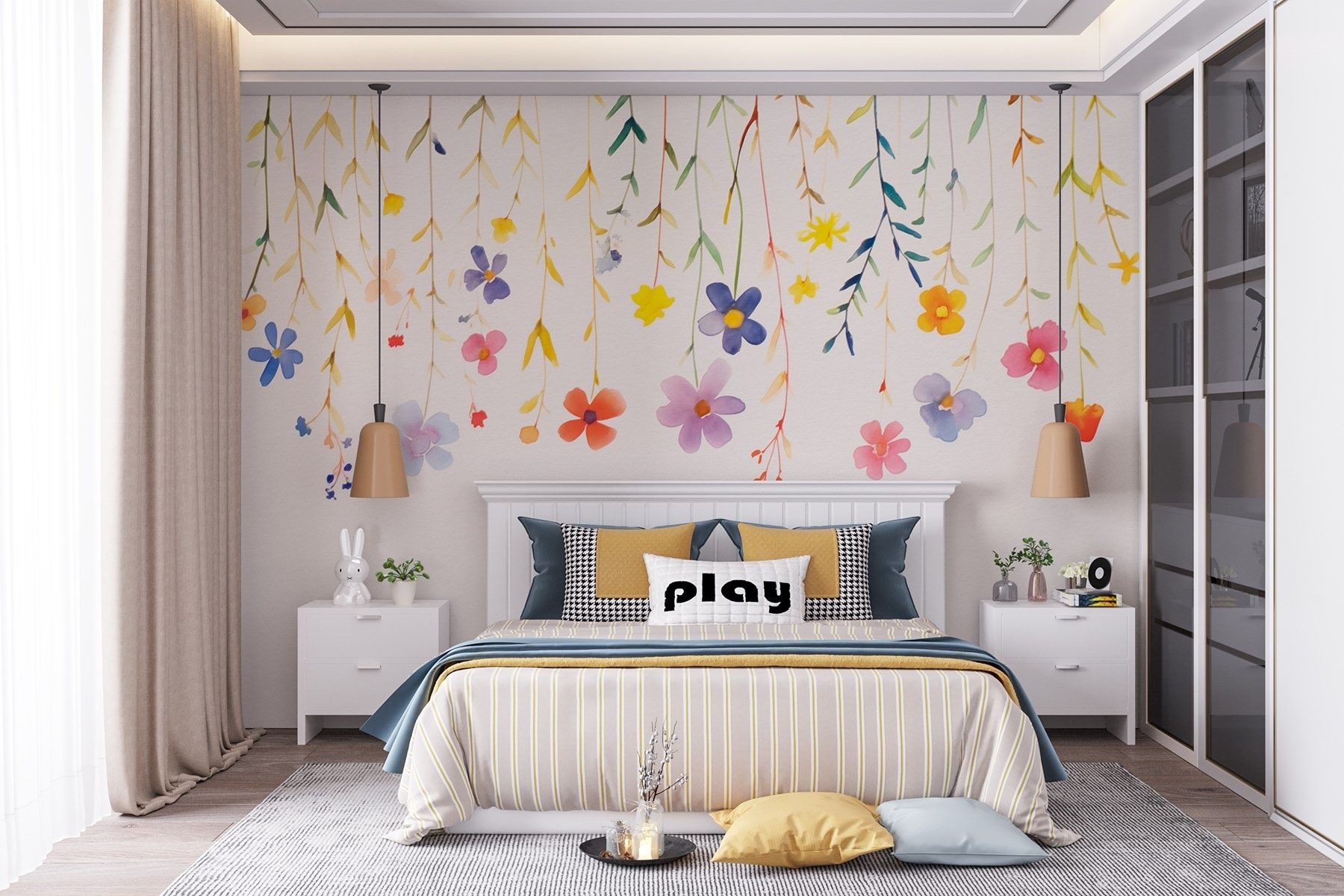 O mural que encomendámos é espantoso! As cores são lindas, e a qualidade é de primeira qualidade. Foi fácil de instalar, e tem um aspeto fantástico no nosso quarto. Recomendo vivamente!