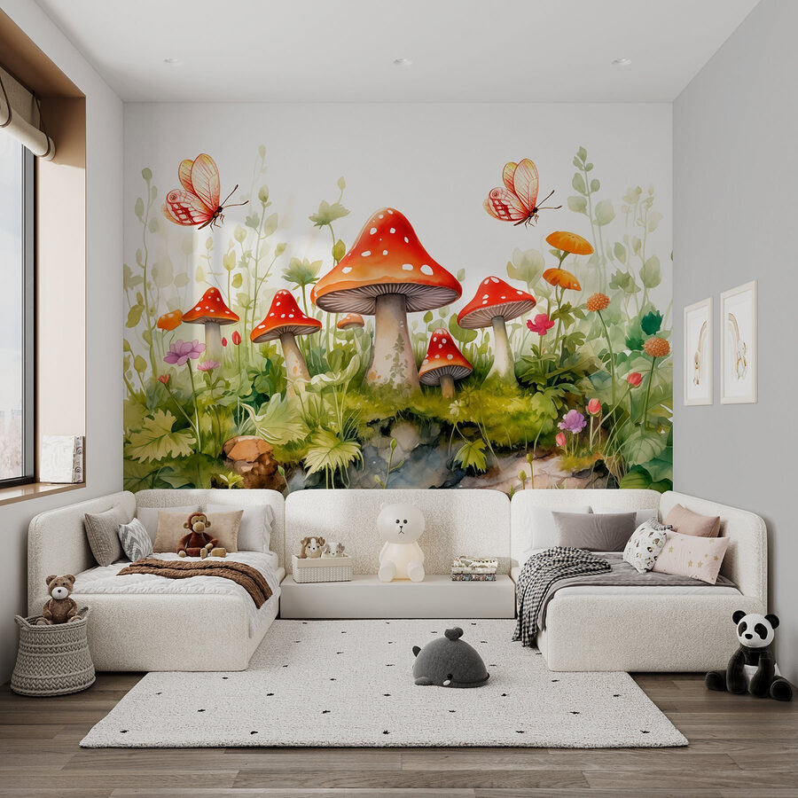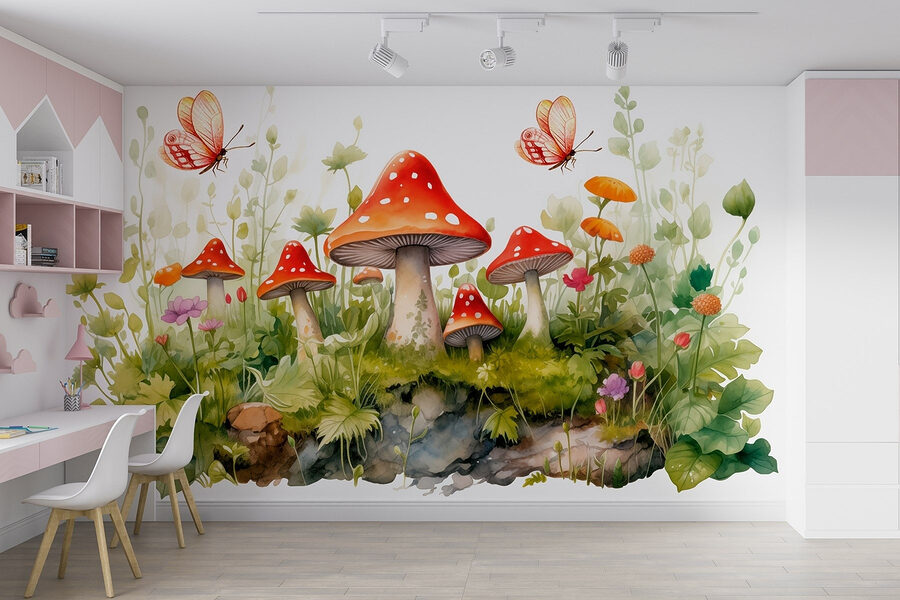 Transforme o seu espaço com este encantador mural de parede com cogumelos encantadores e borboletas delicadas. Imagine entrar numa sala onde os caprichos da natureza dançam à sua volta. As vibrantes tampas vermelhas dos cogumelos saltam como doces numa floresta, enquanto as suaves flores pastel espreitam através da vegetação luxuriante. Aquelas borboletas? Pura magia, esvoaçando pelo cenário como se tivessem um sítio especial para estar. É como trazer uma fatia de um conto de fadas para a sua casa, convidando-o a fazer uma pausa e a apreciar as pequenas maravilhas da vida. Este mural não se limita a decorar – ele desperta alegria! Perfeito para um recanto acolhedor, um quarto de criança, ou qualquer sítio que precise de uma pitada de alegria.