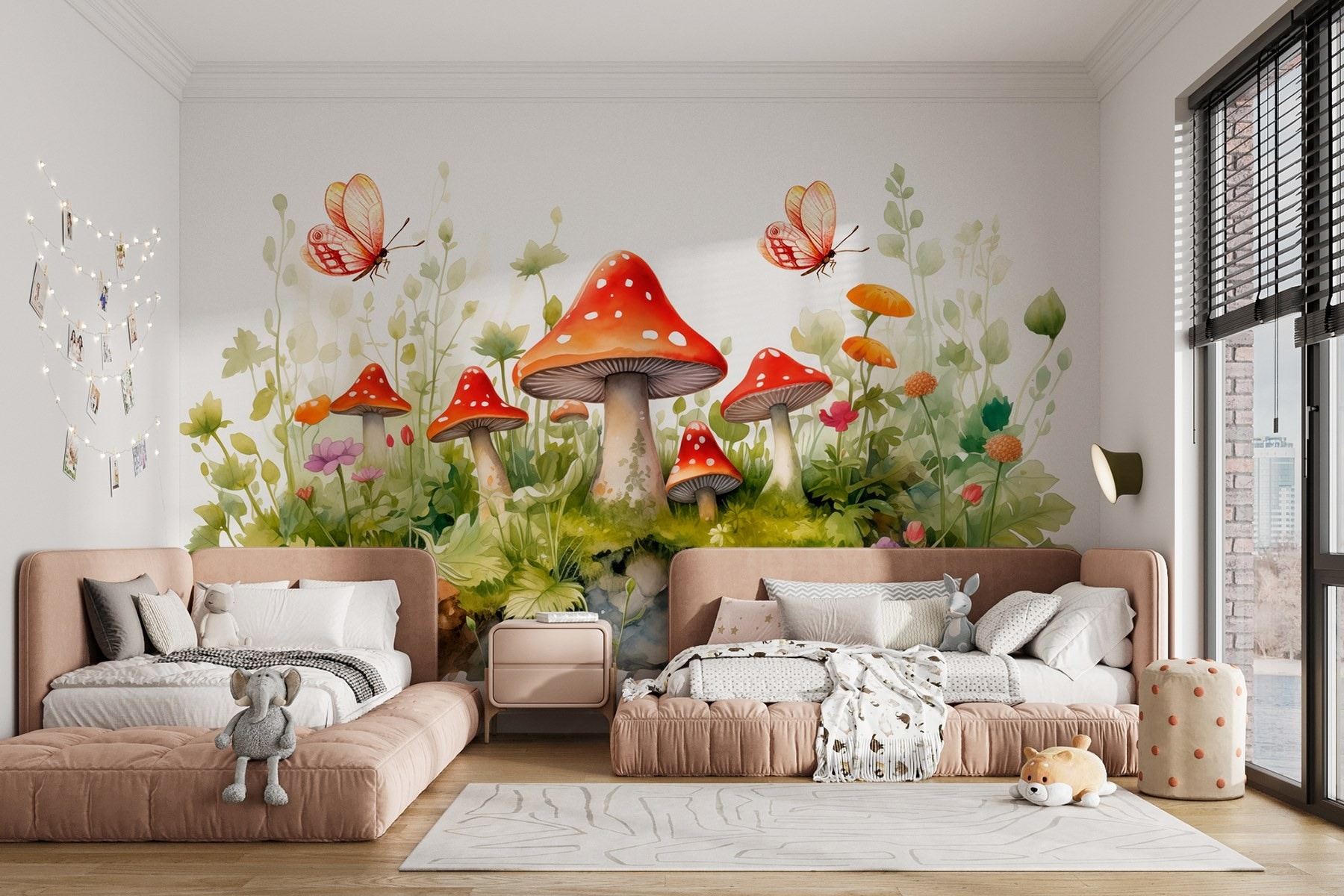 Transforme o seu espaço com este encantador mural de parede com cogumelos encantadores e borboletas delicadas. Imagine entrar numa sala onde os caprichos da natureza dançam à sua volta. As vibrantes tampas vermelhas dos cogumelos saltam como doces numa floresta, enquanto as suaves flores pastel espreitam através da vegetação luxuriante. Aquelas borboletas? Pura magia, esvoaçando pelo cenário como se tivessem um sítio especial para estar. É como trazer uma fatia de um conto de fadas para a sua casa, convidando-o a fazer uma pausa e a apreciar as pequenas maravilhas da vida. Este mural não se limita a decorar – ele desperta alegria! Perfeito para um recanto acolhedor, um quarto de criança, ou qualquer sítio que precise de uma pitada de alegria.