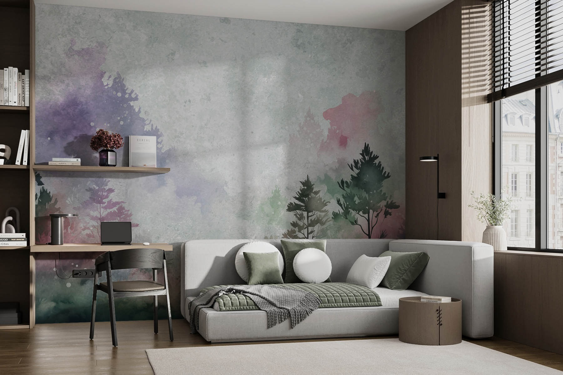 Transforme qualquer divisão numa fuga serena com este deslumbrante mural de árvores e plantas. Imagine-se a entrar numa floresta tranquila a partir do conforto da sua sala de estar, onde os tons suaves e as pinceladas suaves criam uma atmosfera que sussurra relaxamento. Imagine as manhãs de domingo passadas a beber café, rodeadas pela beleza da natureza, sem necessidade de botas de caminhada. A vibração da aguarela acrescenta um toque artístico, tornando-a perfeita para galerias ou recantos acolhedores. Com as suas profundidades de sonho e sensação natural, este mural convida ao calor e à tranquilidade em todos os espaços. Quem não quereria isso?