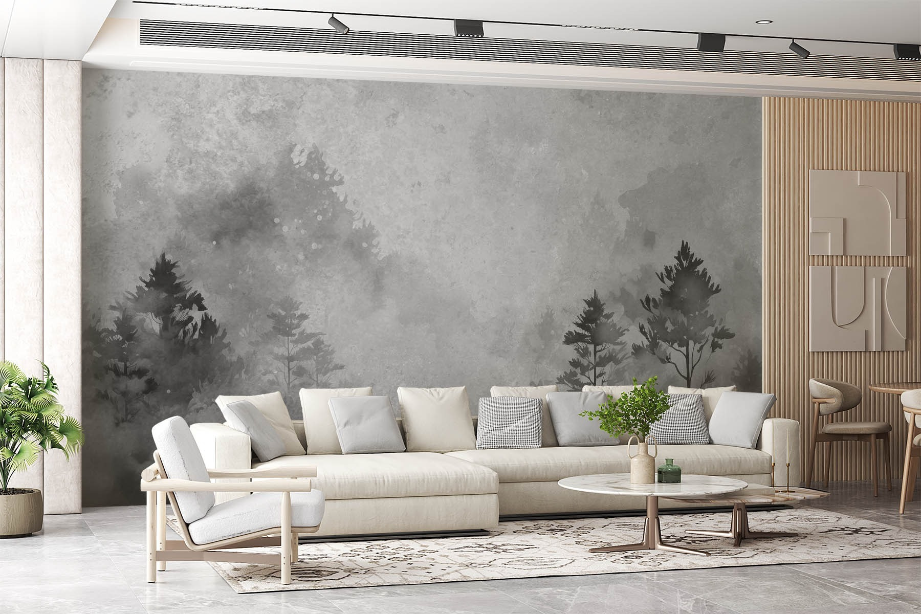 Transforme qualquer divisão num retiro calmante com este cativante mural a preto e branco com árvores e arbustos. Imagine-se a beber o seu café da manhã rodeado por uma cena de floresta suave que parece que a natureza se convidou a entrar em casa. Dá um toque único à decoração moderna, convidando à serenidade sem deixar de ser artístico. Imaginar as reacções dos amigos? Não tem preço. Vão ficar encantados, talvez até um pouco invejosos. Além disso, é fácil de combinar com vários estilos, quer goste de minimalismo, vibrações rústicas ou mesmo um toque de capricho. Perfeito para dar um toque extra sem sobrecarregar o espaço!