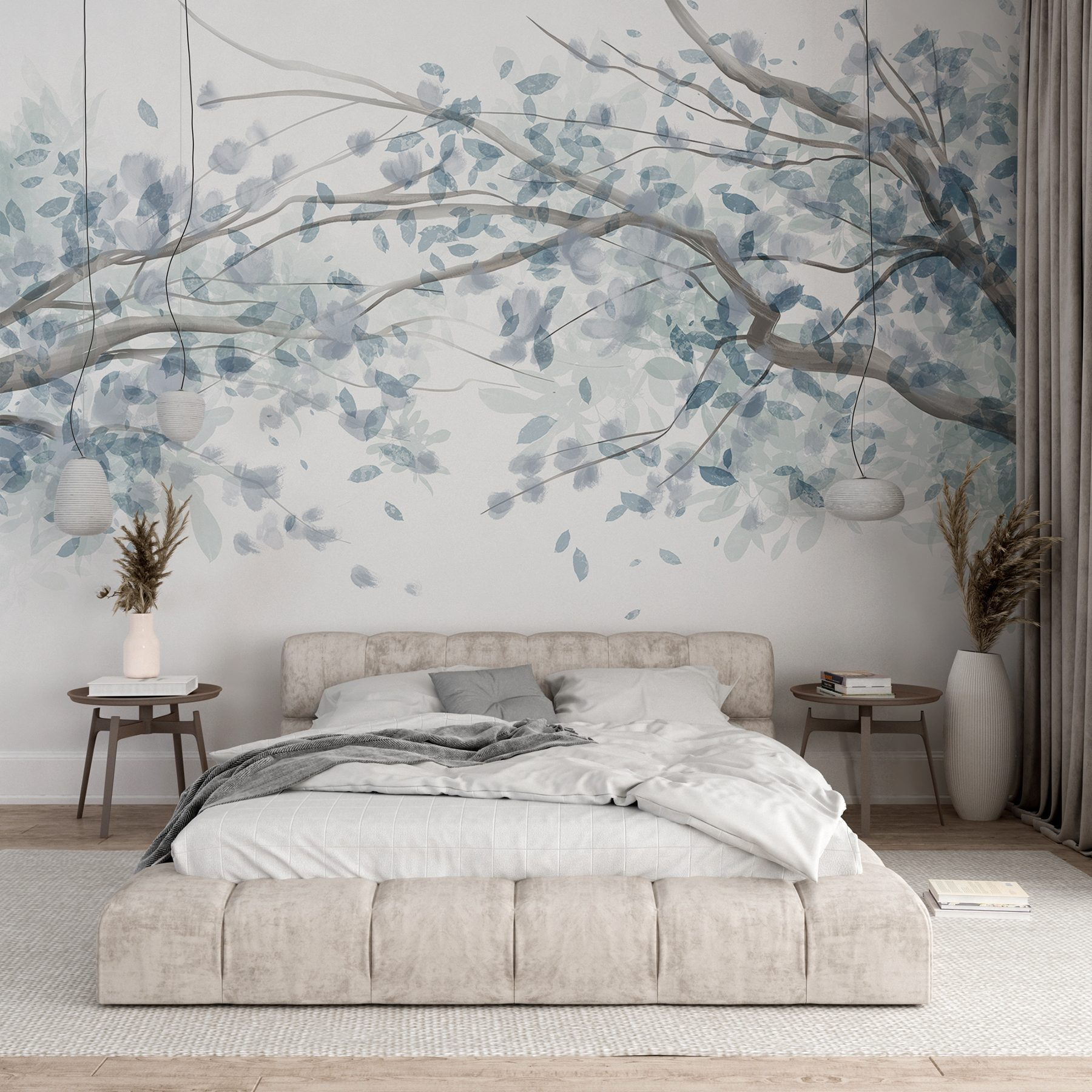 Transforme qualquer espaço num oásis tranquilo com os murais de parede Tree with Blue Leaves. Imagine entrar num mundo sereno, onde os tons frescos e calmantes dançam nas paredes. Este mural é como uma brisa suave num dia de sol, sussurrando doces notas da natureza diretamente para a sua casa. Perfeito para um recanto de leitura acolhedor ou para uma sala de estar animada, traz aquela vibração fresca do exterior sem os insectos. Os amigos e a família podem até esquecer-se que estão cá dentro! É mais do que apenas um design – é um momento, um sentimento, uma pequena fatia de paz.