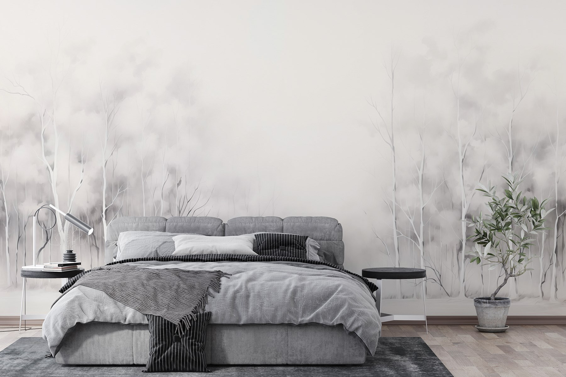 Traga a beleza serena de uma floresta nevada diretamente para as suas paredes com este encantador mural com um grupo de árvores. Imagine-se a entrar num país das maravilhas de inverno sempre que entra na sala. Os tons suaves e discretos criam uma atmosfera tranquila, perfeita para relaxar após um longo dia. É como ter a calma da natureza mesmo em casa. Quer esteja a beber cacau no sofá ou a trabalhar num projeto acolhedor, este mural convida ao calor e à tranquilidade. Além disso, os amigos e a família vão de certeza perguntar sobre ele – alguém quer falar sobre isso? Então, porque não deixar que as suas paredes contem histórias por si?