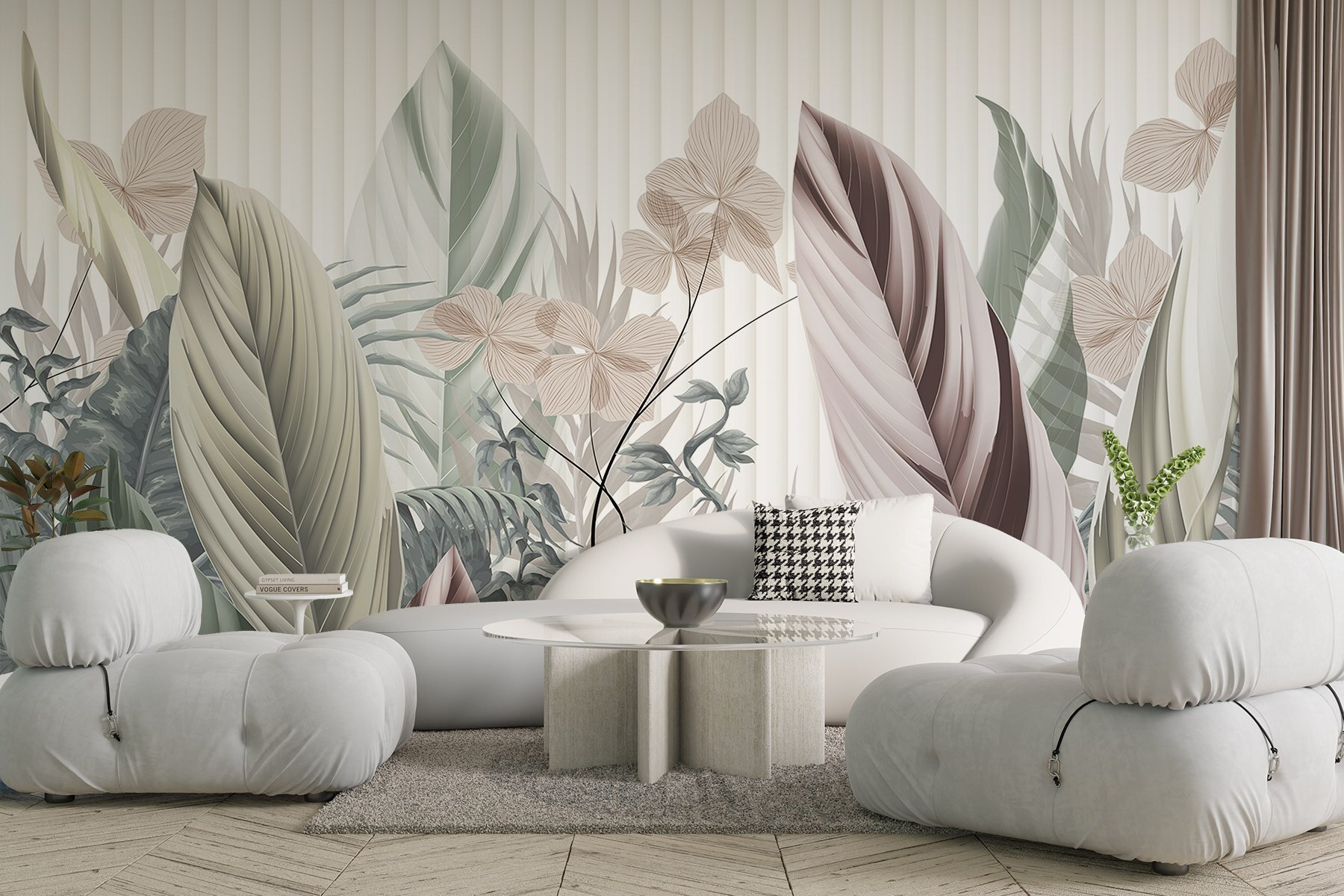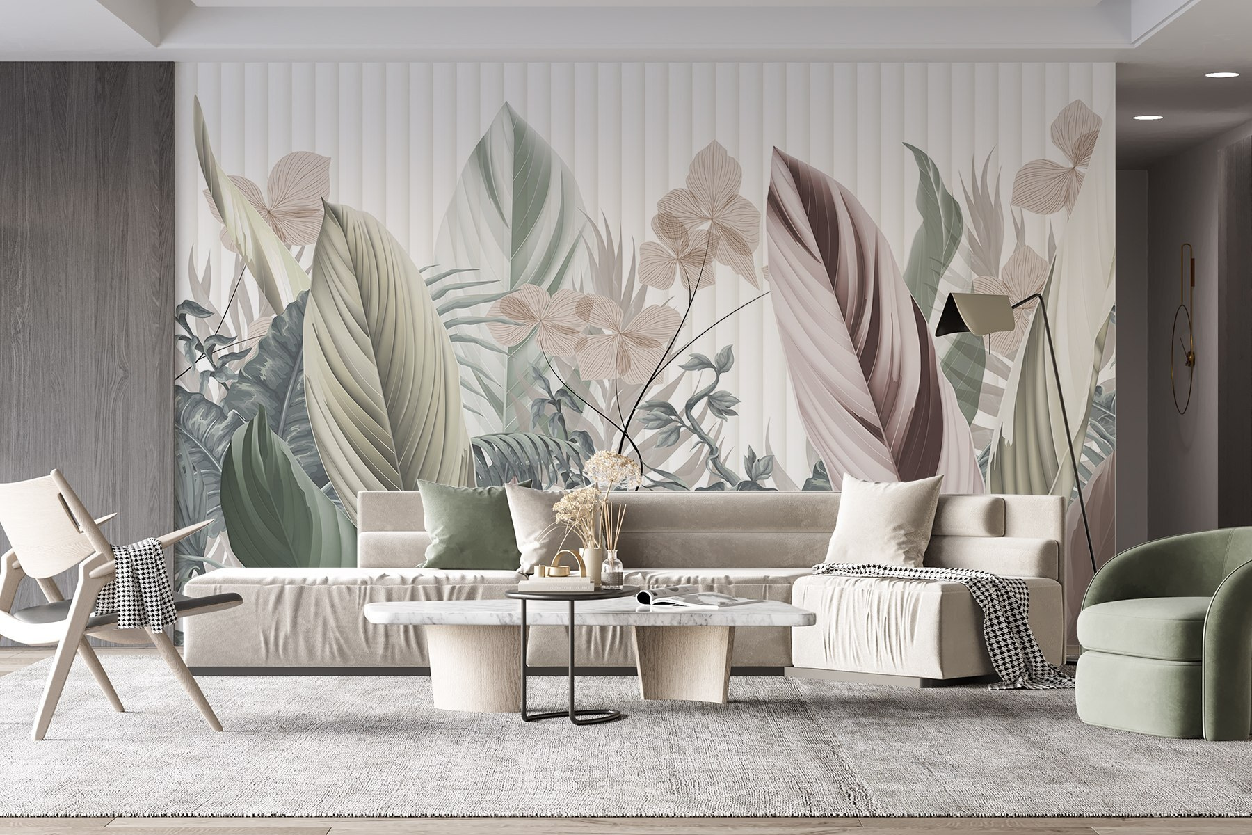 Transforme o seu espaço com este encantador mural de parede, “Natural Elegance in Muted Tones”. Imagine-se a entrar num jardim sereno sempre que entra na divisão. A paleta suave de desenhos de folhas e flores parece uma brisa suave a sussurrar através das árvores. É como trazer o ar livre diretamente para as suas paredes – não é necessário um polegar verde!