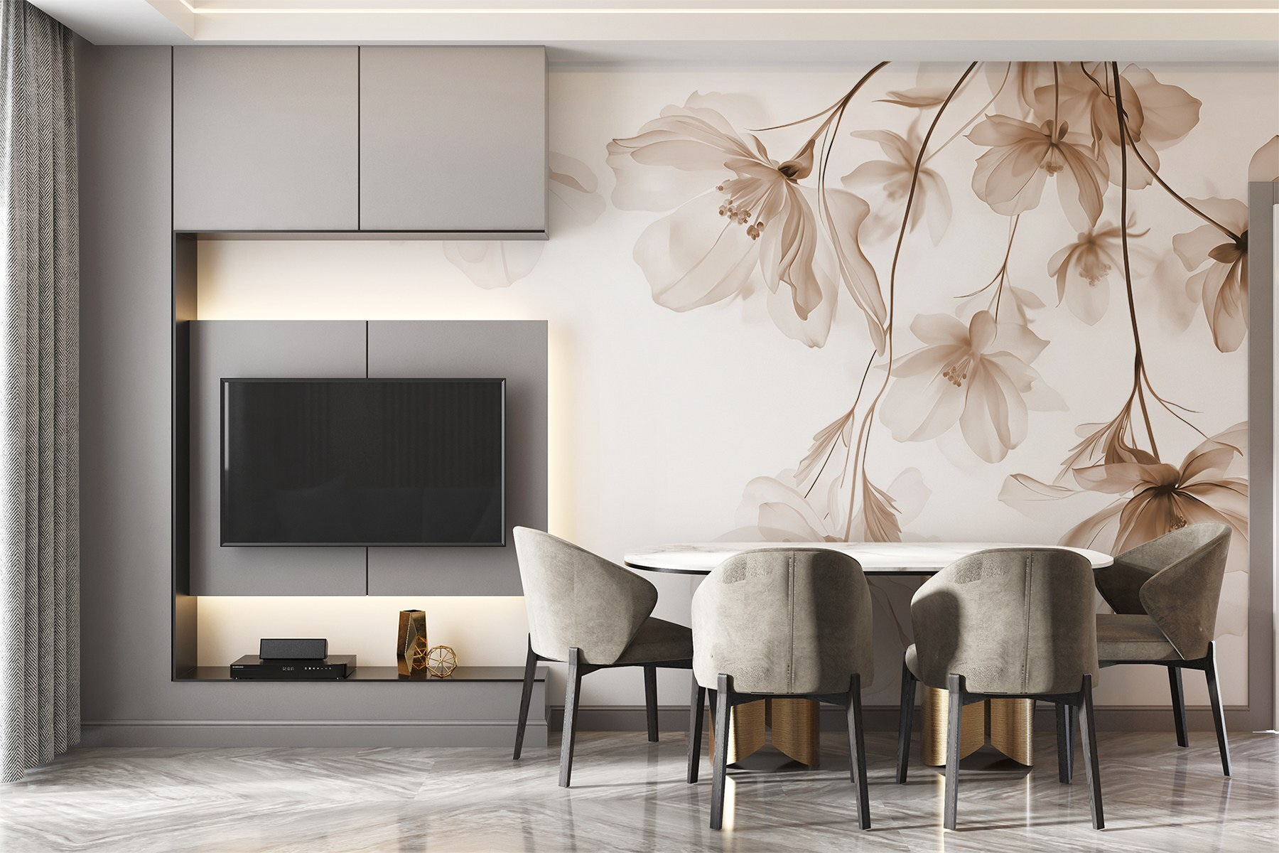 Transforme qualquer espaço com este espantoso mural de parede com flores delicadas em tons suaves. Imagine entrar num jardim sereno diretamente da sua sala de estar – cada flor sussurra tranquilidade como se a pintura da natureza tivesse ganho vida. Não se trata apenas de decoração; é uma experiência. Imagine-se a receber amigos e as suas conversas a desaparecerem em segundo plano enquanto admiram esta bela vista. As cores suaves dão calor à divisão, tornando-a aberta e convidativa. Perfeito para criar aquele ambiente de retiro tranquilo. Um pequeno pedaço do paraíso, mesmo na sua parede.