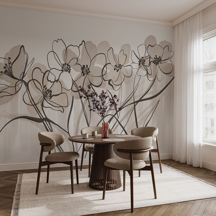 Ilumine o seu espaço com este belo mural de parede com uma delicada linha de flores a dançar contra um suave fundo branco. Imagine entrar numa sala onde a beleza da natureza se instala, acalmando a sua mente mesmo nos dias mais agitados. As suaves pinceladas de aguarela criam uma vibração relaxante, perfeita para um recanto acolhedor ou um escritório tranquilo. É como ter um pequeno jardim na parede, sem o regador! Os seus amigos podem pensar que é um especialista em natureza. Então, porque não dar um toque de elegância e capricho às suas paredes?