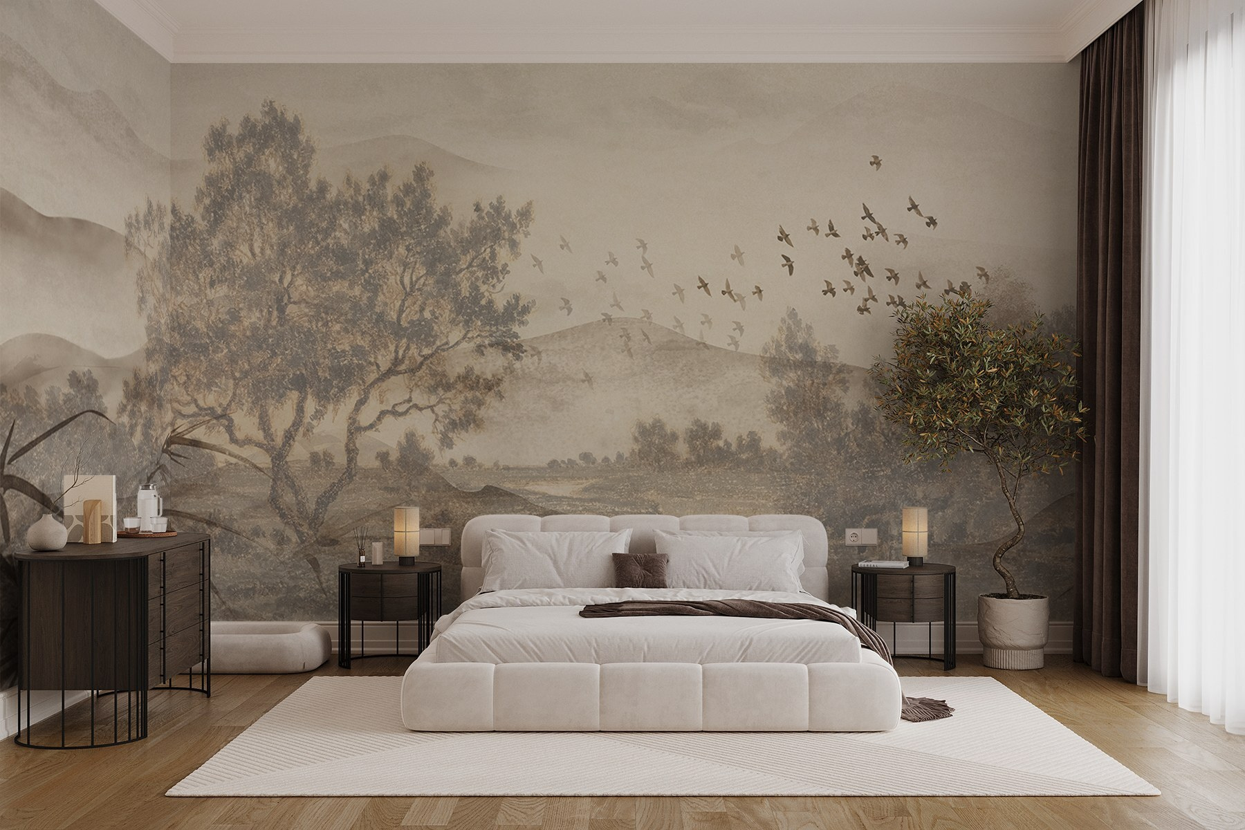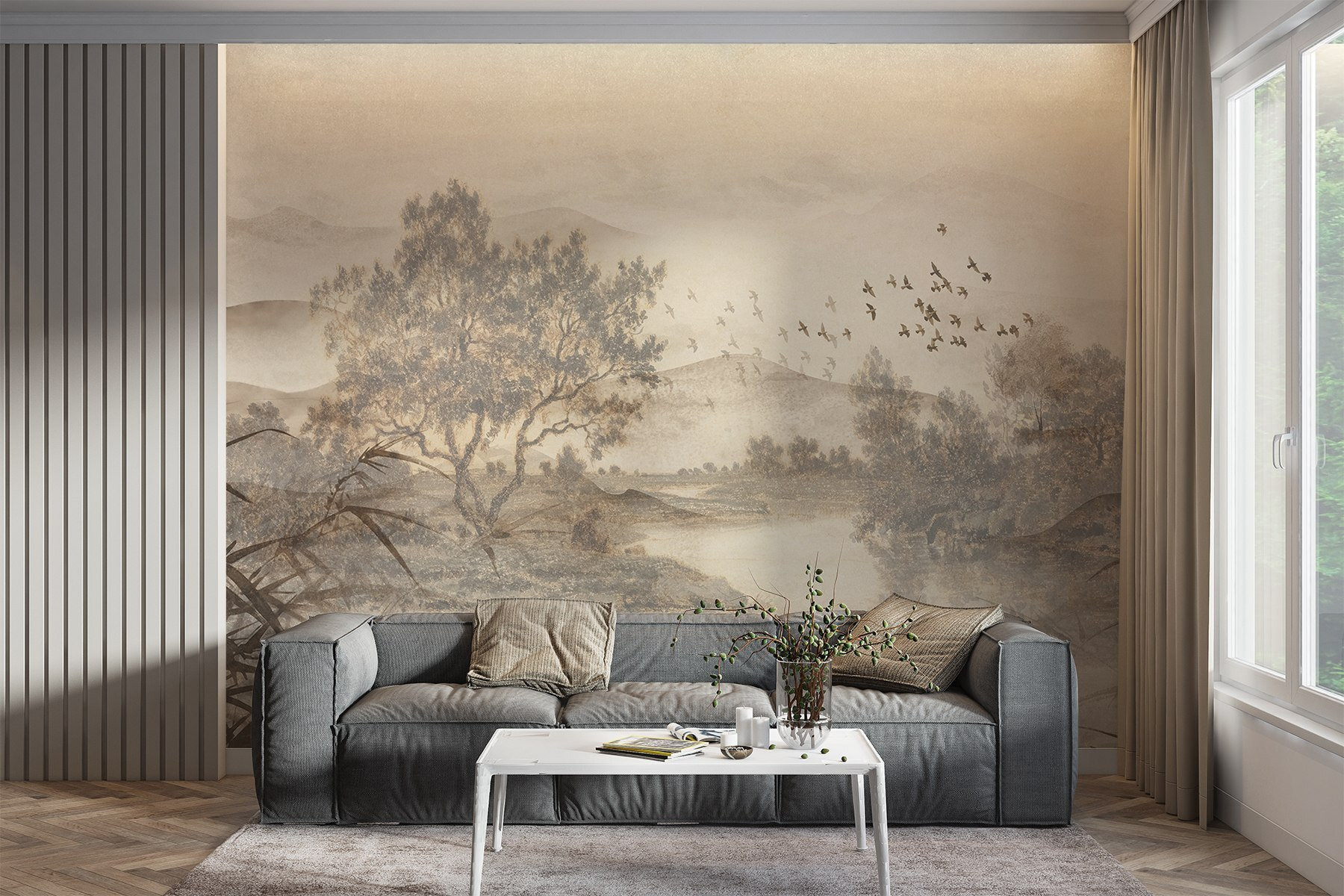 Transforme qualquer divisão numa fuga serena com este cativante mural de parede que apresenta uma paisagem tranquila de árvores e um rio suave. Imagine acordar com os tons suaves da natureza – é como trazer um pedaço do exterior para o interior. O estilo aguarela acrescenta um toque de sonho, perfeito para acalmar a mente após um longo dia. Imagine-se a beber café enquanto observa os pássaros a voar, ou a criar o cenário perfeito para um recanto de leitura acolhedor. Este mural sussurra momentos de paz e tardes preguiçosas. Não se trata apenas de arte; é uma experiência à espera de iluminar o seu espaço.