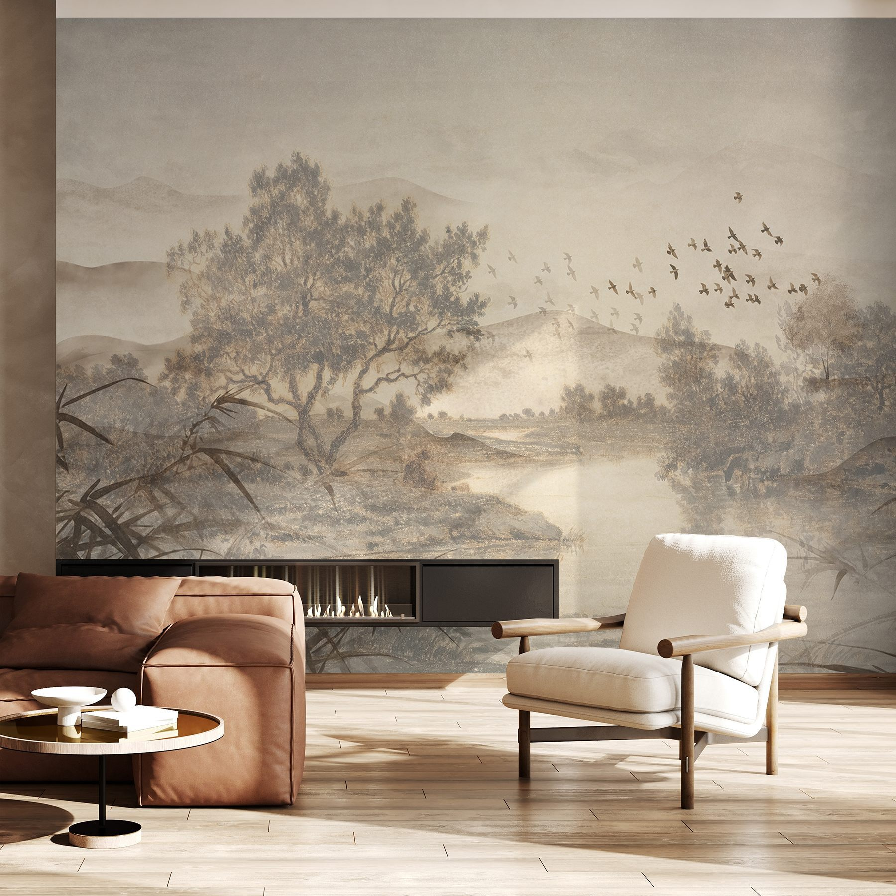 Papel de parede Papel de parede Paisagem com árvores e um rio (REF: w08920)