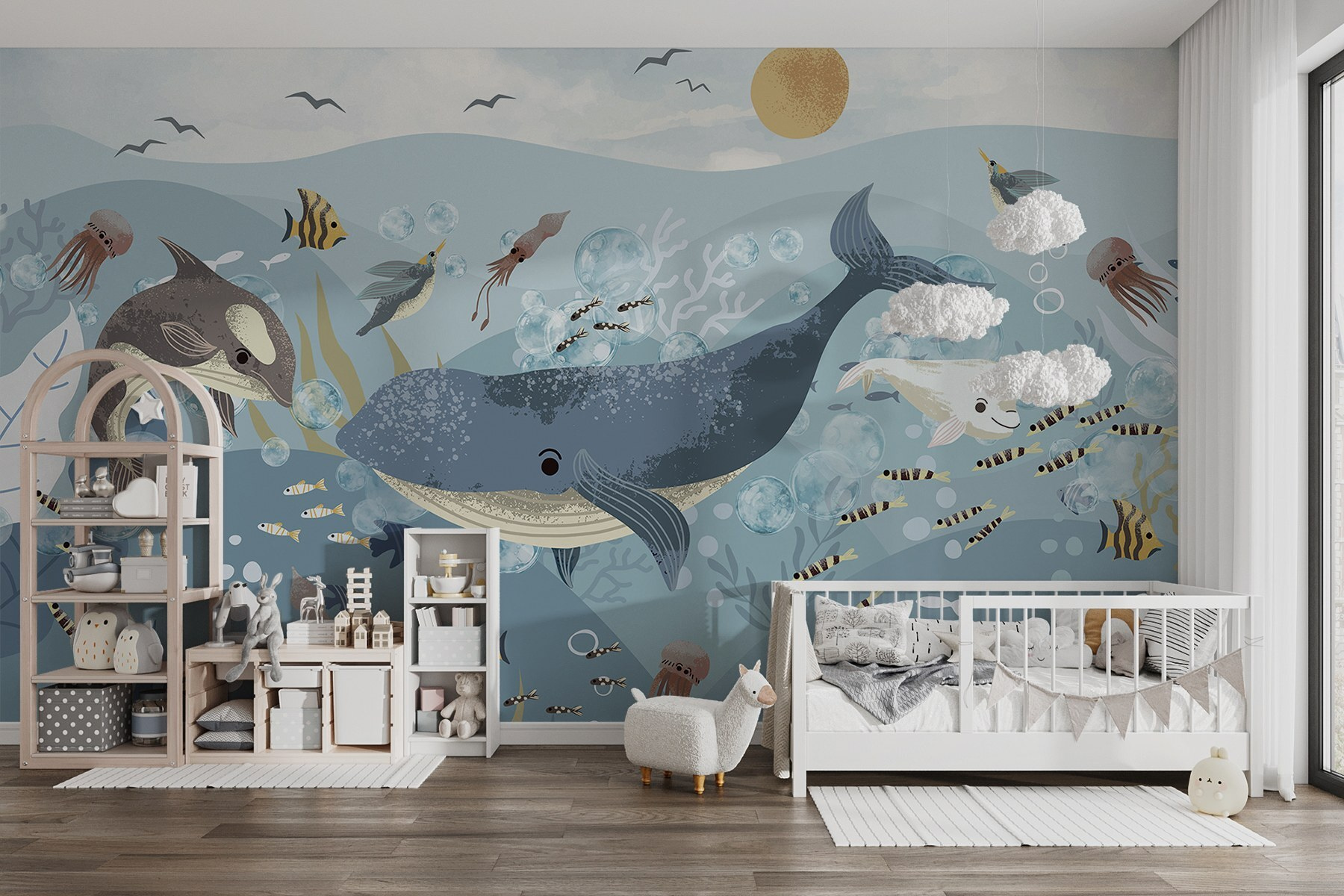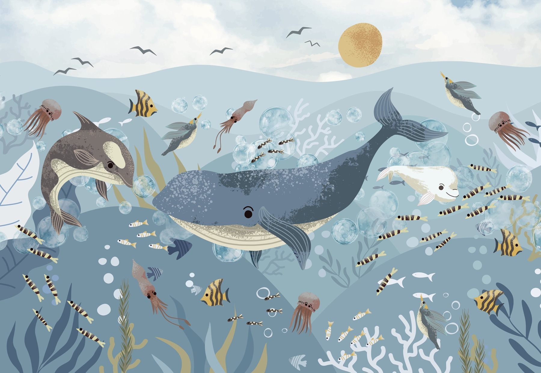 Mergulhe num mundo de capricho com este mural que apresenta uma mistura animada de peixes e baleias a brincar sob as ondas suaves do oceano. Imagine crianças a rir, a ver medusas coloridas e golfinhos adoráveis a nadar. É como alimentar a imaginação ao pequeno-almoço com uma dose de aventura! Os amigos vão entrar no quarto, sentindo instantaneamente a brisa fresca do oceano (ou pelo menos imaginando-a). Perfeito para o quarto de uma criança ou para um recanto de leitura acolhedor, este mural transforma qualquer parede numa explosão de felicidade. Por isso, vá em frente, deixe esta festa subaquática iluminar esses espaços aborrecidos!