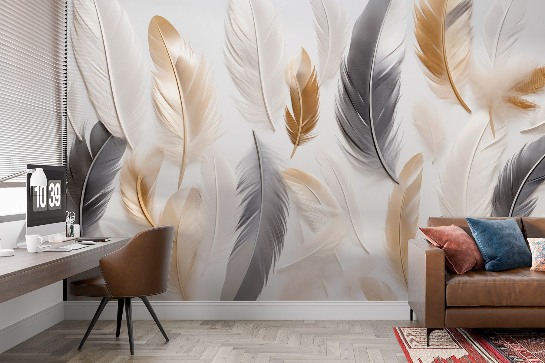 Transforme qualquer divisão com este deslumbrante mural de parede que apresenta um belo arranjo de penas num fundo branco nítido. É como trazer uma vibração leve e alegre diretamente para a sua casa. Imagine acordar todas as manhãs com este design elegante, lembrando-o de dias calmos passados ao ar livre. A mistura de tons de penas dá uma sensação de profundidade – cada um parece ter a sua própria personalidade, apenas à espera que alguém repare nele. Perfeita para um recanto de leitura acolhedor ou para uma entrada elegante, é o tipo de obra de arte que fará com que os convidados dêem duas voltas. Deixe que as suas paredes contem uma história, convidando ao calor e a um toque de natureza no seu interior.